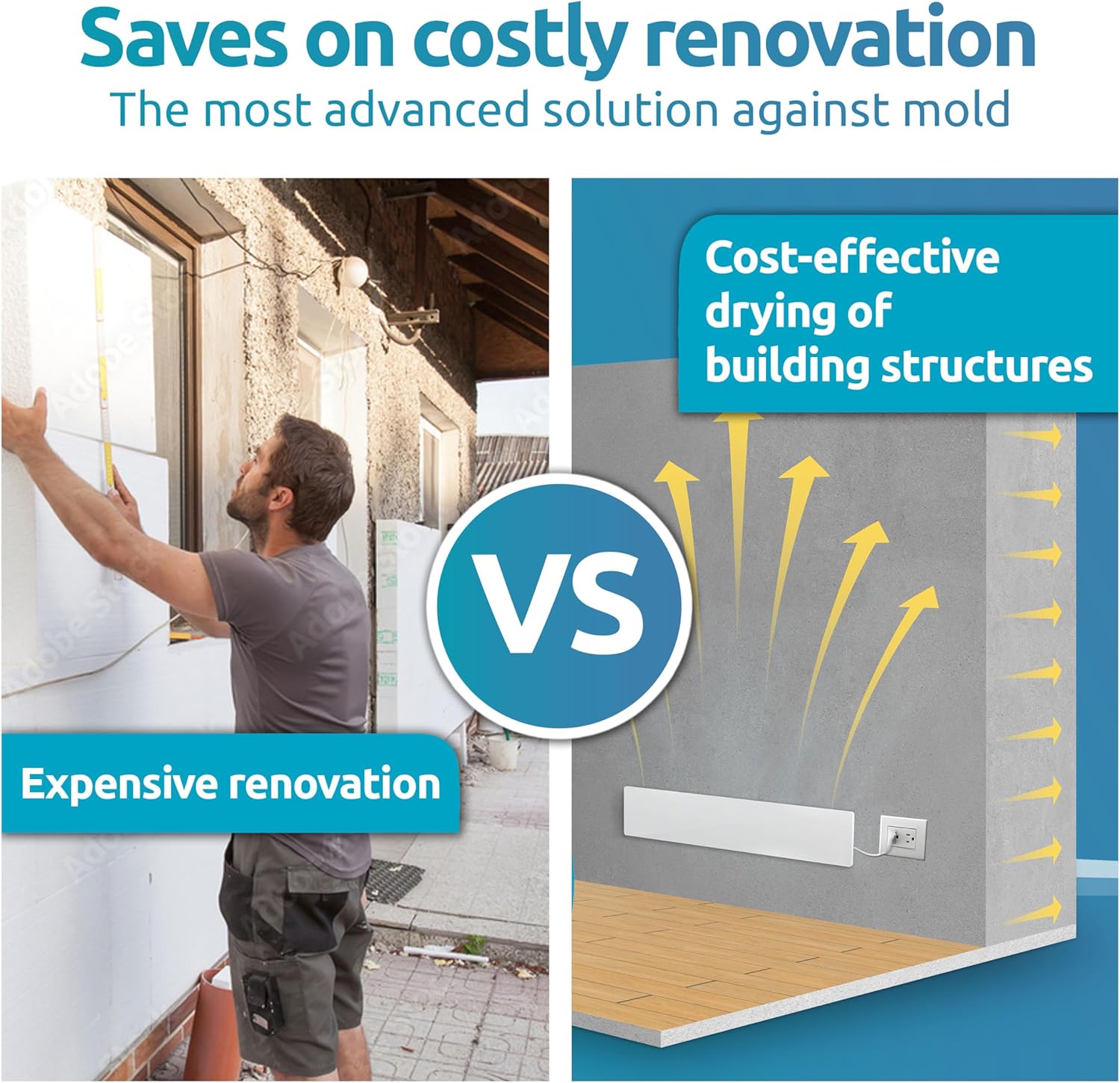 • SAFE FOR CHILDREN & PETS - 100% chlorine-free, the infrared heater is the best black mold killer for walls. Completely without aggressive anti-mold spray or mold removal gel. The ideal alternative for households with children and pets.