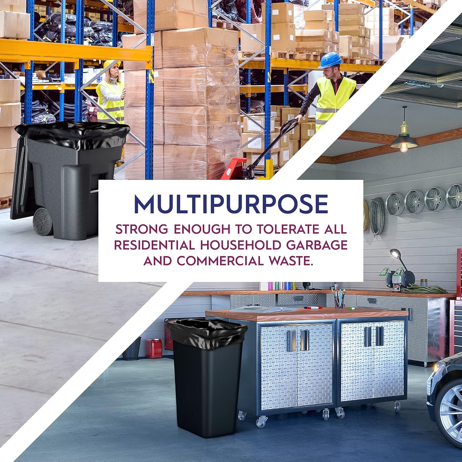 60 Gallon Trash Can Liners Bags - (100 Count) Capacity & 3mil Thick Extra Heavy Duty Strength - Large Garbage, Leak-Proof & Durable Bags Black