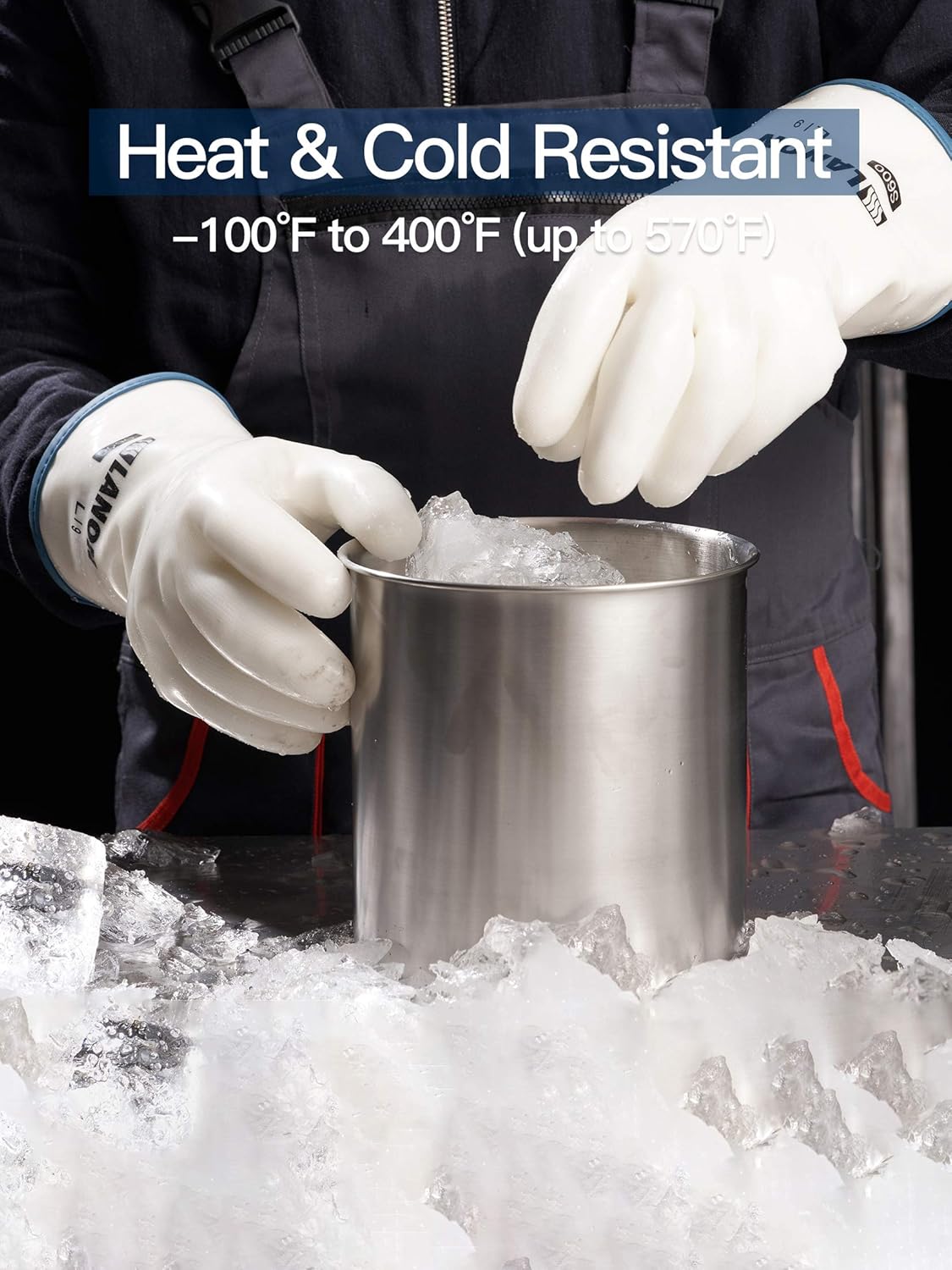 LANON Protection wahoo Liquid Silicone Smoker Oven Gloves, Food-Contact Grade, Heat Resistant Gloves for Cooking, Grilling, Baking, White, XXL/11