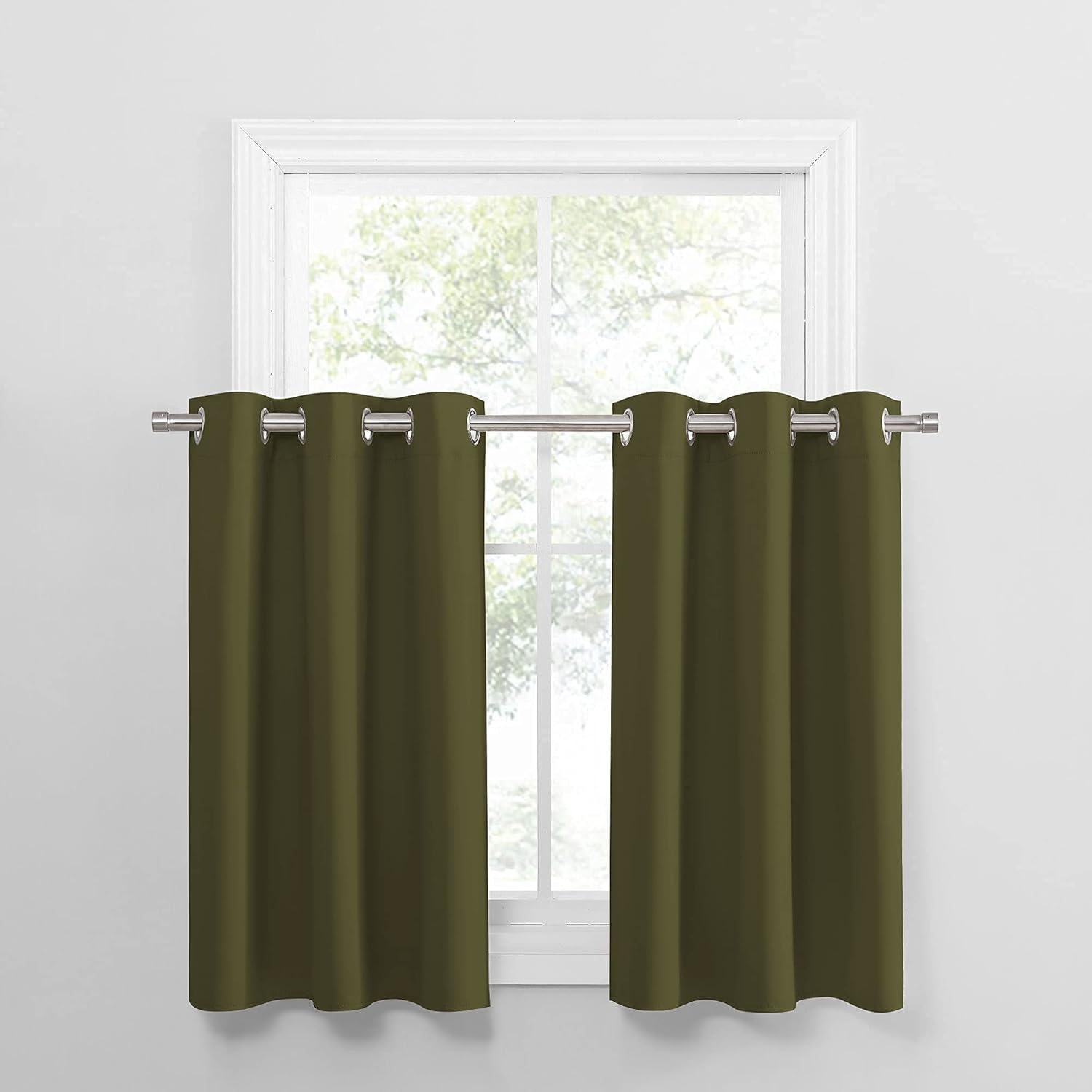 PONY DANCE Window Curtain Tiers - (42 by 36 inches, Olive Green, 2 Pieces) Room Darkening Curtains Short Panels Drapes for Small Half Window Kitchen Decor