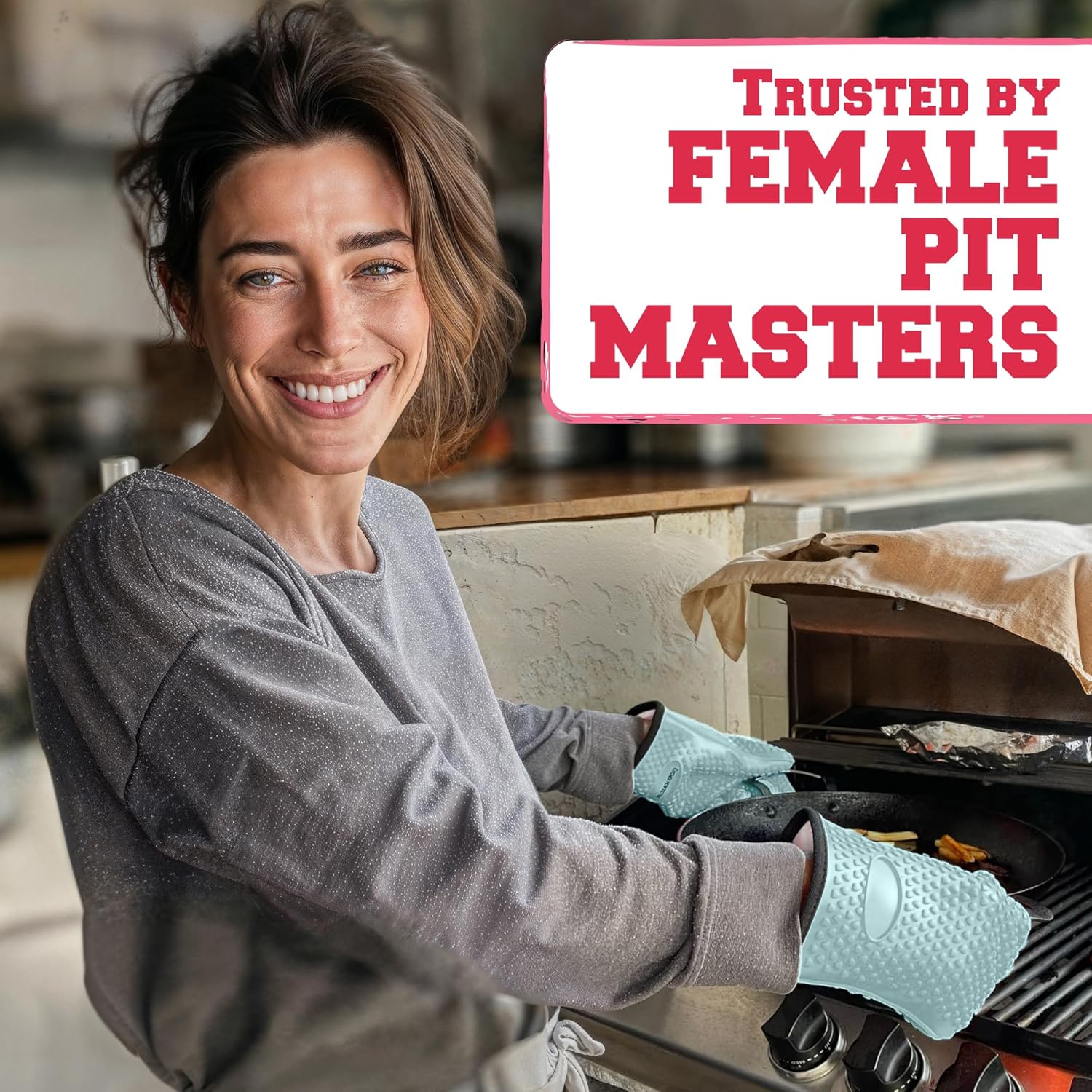 - Best Mothers Day Gifts - The Ultimate Gloves For You Barbecue Lovers – Don’t burn yourself, for your protection use Kitchen Perfection 11-inches grill gloves, high-graded, up to 500 degrees durable, thick cotton and waterproof silicone double layer, outstanding insulation gloves that fit large and small hands alike, use for your traeger, big green egg, turkey fryer, oklahoma joe smoker, camp chef, weber, rec tec, black stone, charcoal, pit boss, heavy-duty pit and barbecue gas grills and smokers.