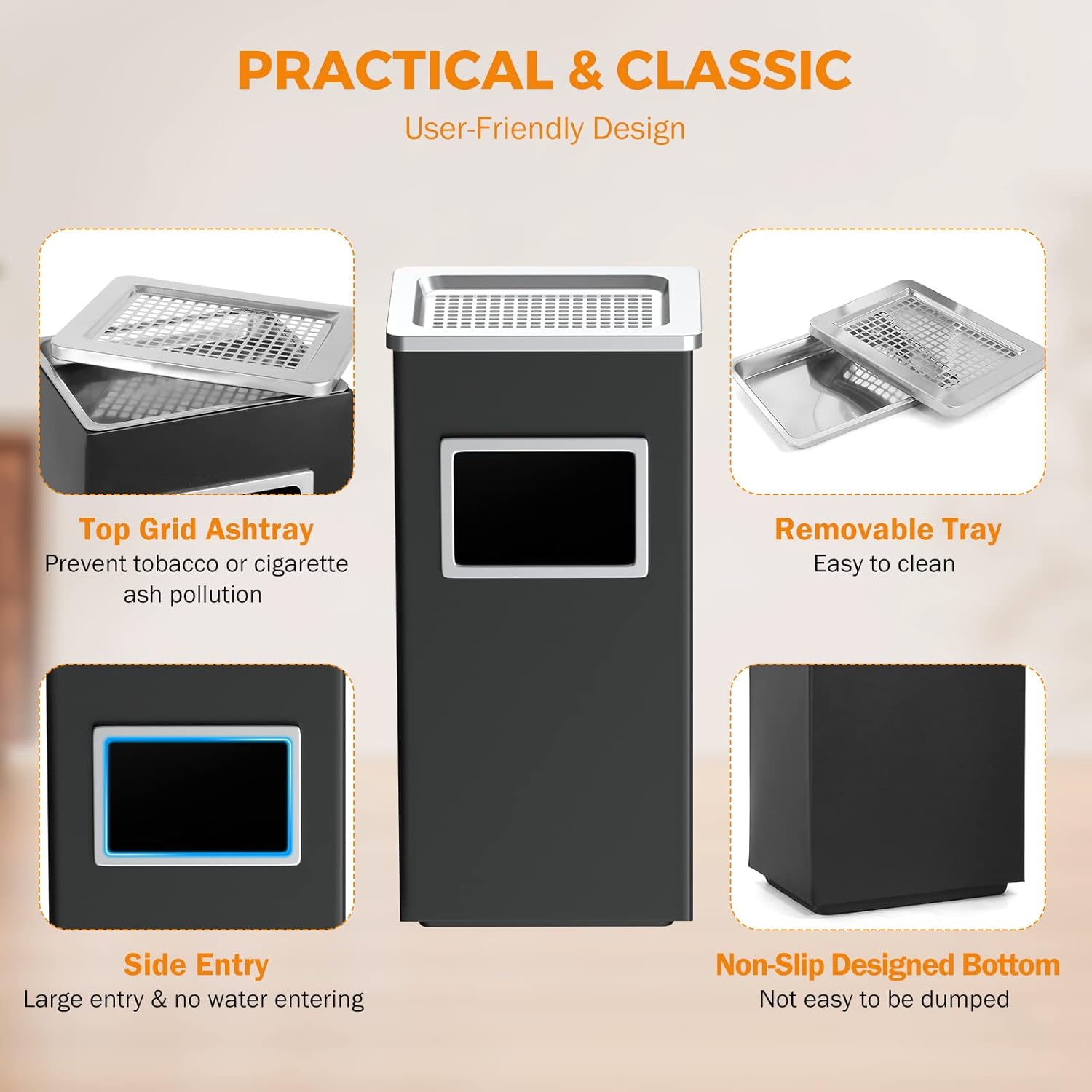BEAMNOVA Trash Can Indoor Outdoor Black Stainless Steel Commercial Garbage Can Industrial Garbage Enclosure Inside Cabinet with Lid Waste Container, Black, 31 * 25 * 61 cm / 12.2 * 9.8 * 24 in