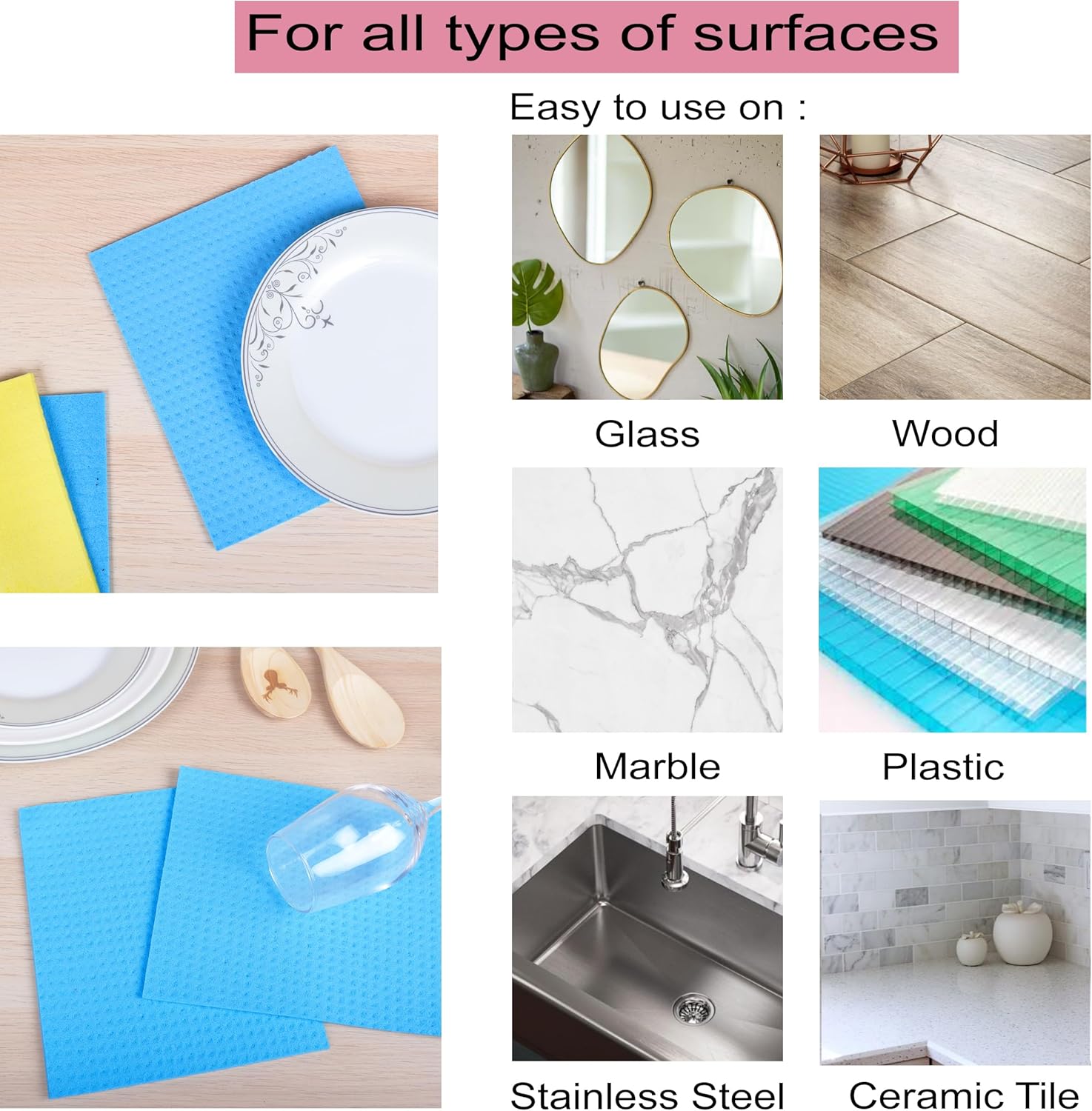 - NO ODOR - The cellulose sponge material is naturally odor-resistant, ensuring that your dishcloths stay fresh and clean, even after repeated use. Say goodbye to smelling dishcloths and enjoy the fresh, clean scent of your kitchen.