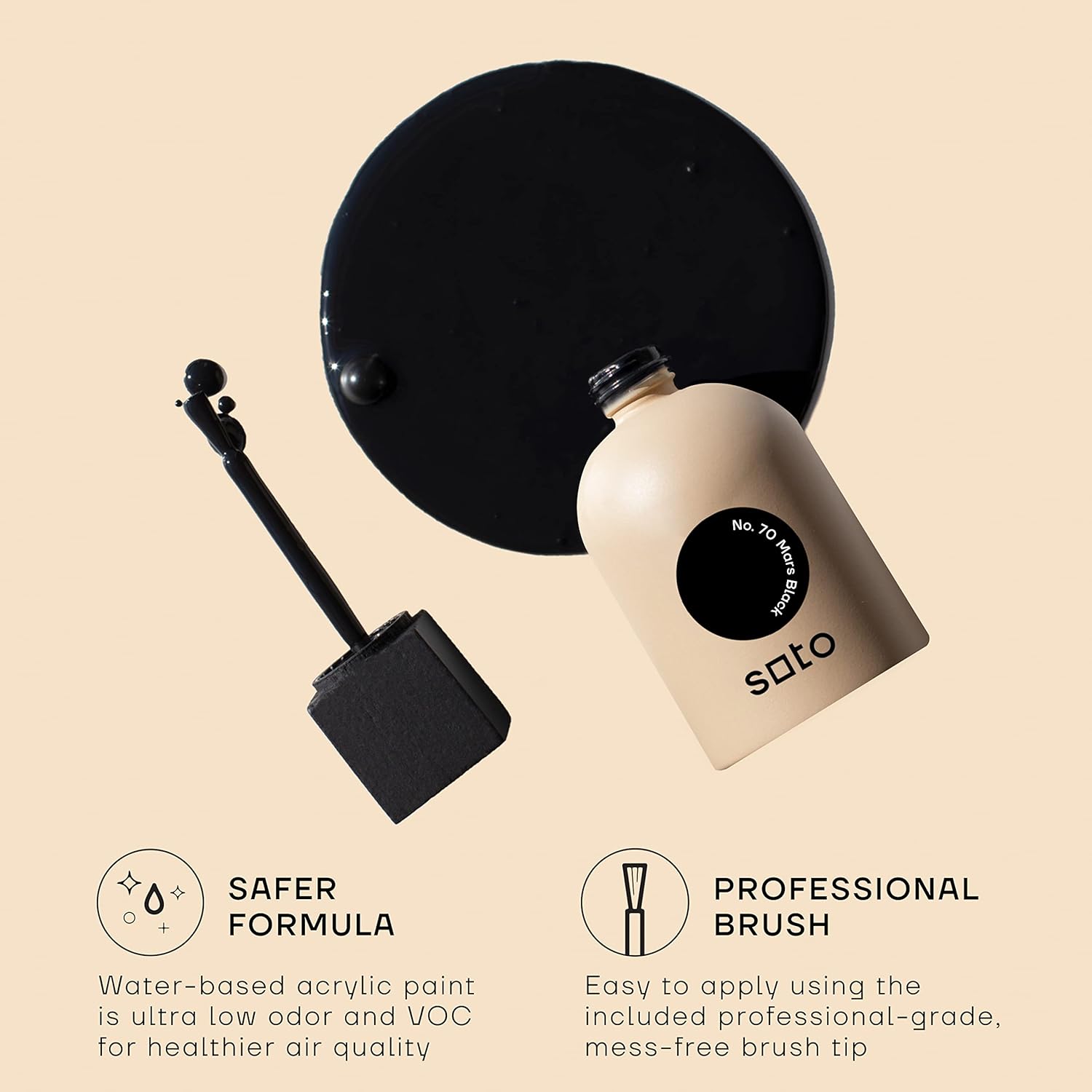 soto Black Paint Touch Up, Multi-Surface, Matte Finish (No. 70 Mars Black) - 1.5 Ounces/45 Milliliters of Scratch Repair for Furniture, Walls, Cabinets, Trim, Doors, Indoor/Outdoor