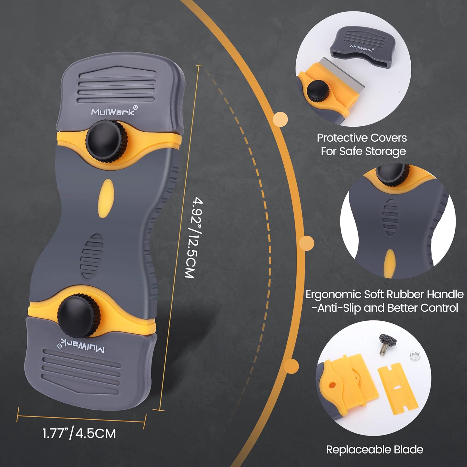 MulWark Razor Blade Scraper Tool Set, 3-Piece with 30 Replacement Blades - Heavy-Duty Cleaning Tool, Standard & Mini Scrapers for Decals, Stickers, Paint, Caulk, and Adhesive Removal