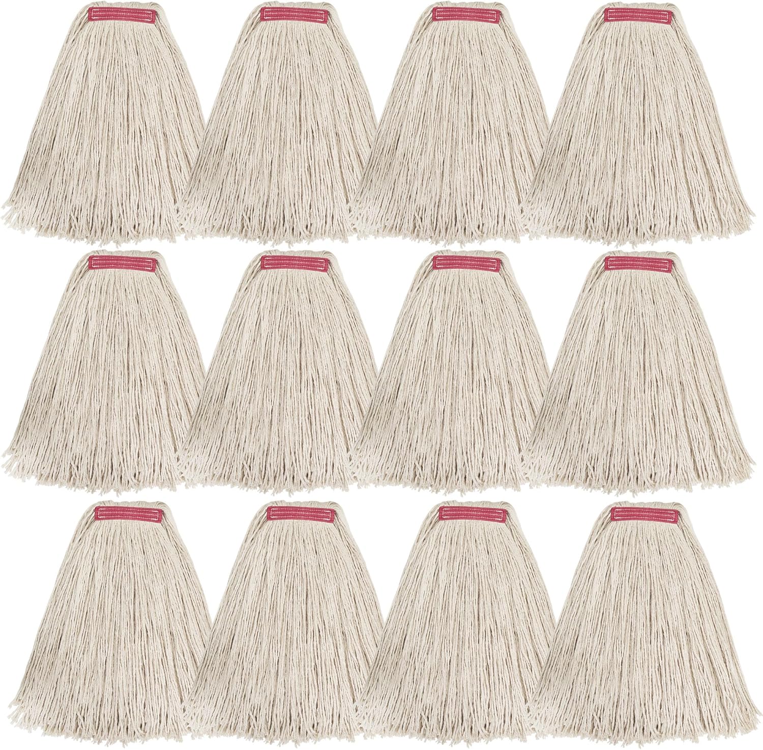 Matthew Cleaning 20oz 12Pack Cotton Mop Head Replacement,Looped-Open String Heavy Duty String Mop Refills,Universal Headband Blend,Floor Cleaning for Home, Industrial and Commercial Use(White)