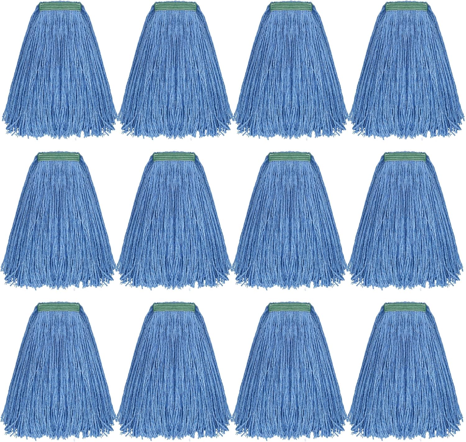 Matthew Cleaning 16oz 12Pack Cotton Floor Mop,Cotton Looped-Open String Heavy Duty String Refills, Universal Headband Blend Material,Mop Head Replacement for Home, Industrial and Commercial Use(Blue)