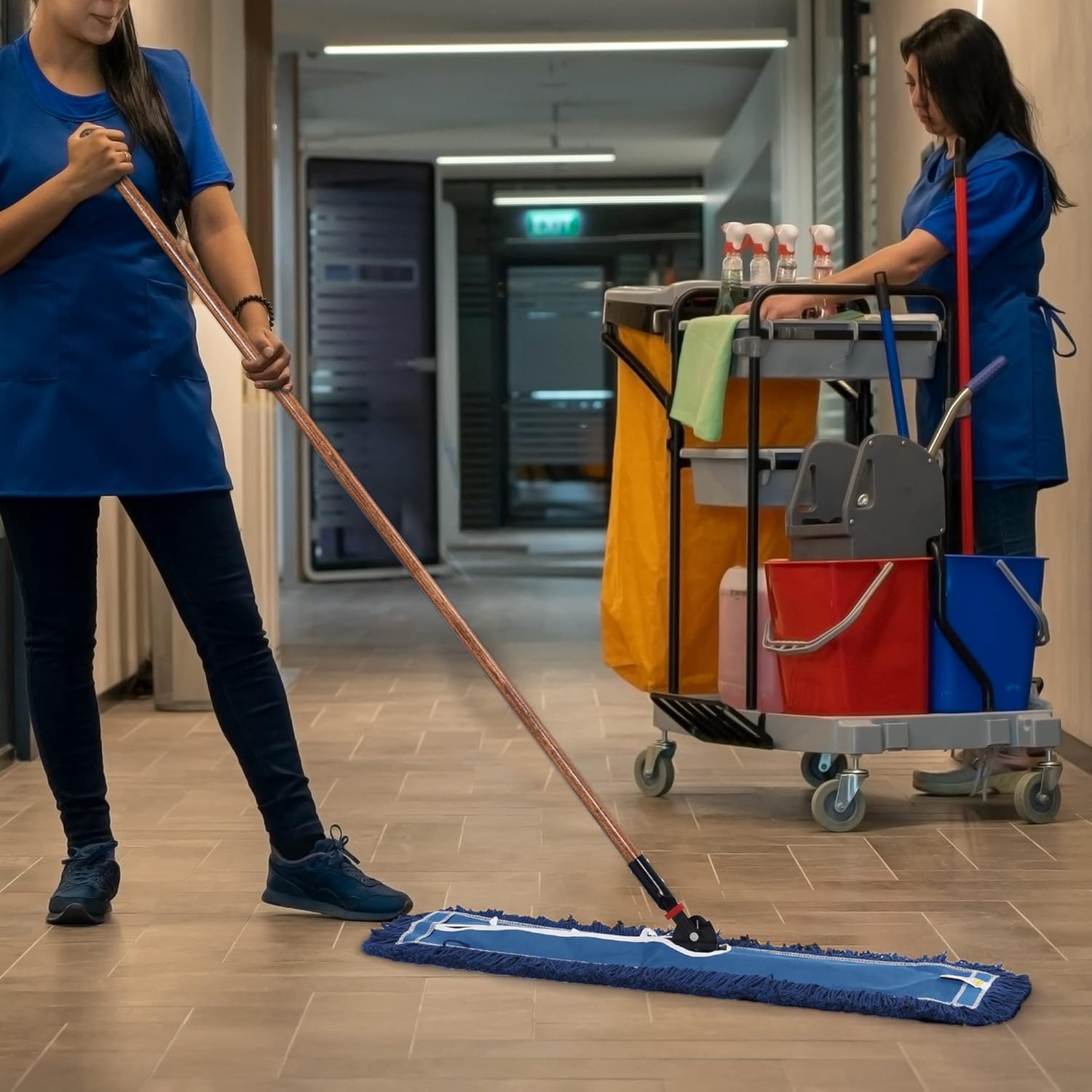 - The professional grade loop end dust mop blended yarn produces an exceptional result when picking up dirt, dust, pet hair and debris from even the most stubborn places. It also has a unique twist on the end that does not cause snags on anything