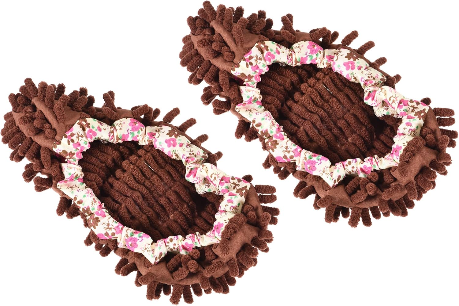1 Pair Washable Cleaning Shoes Cover - Floor Cleaning Dust, Chenille Microfiber Duster Mop Slippers, Apply to House Office Room (Brown)