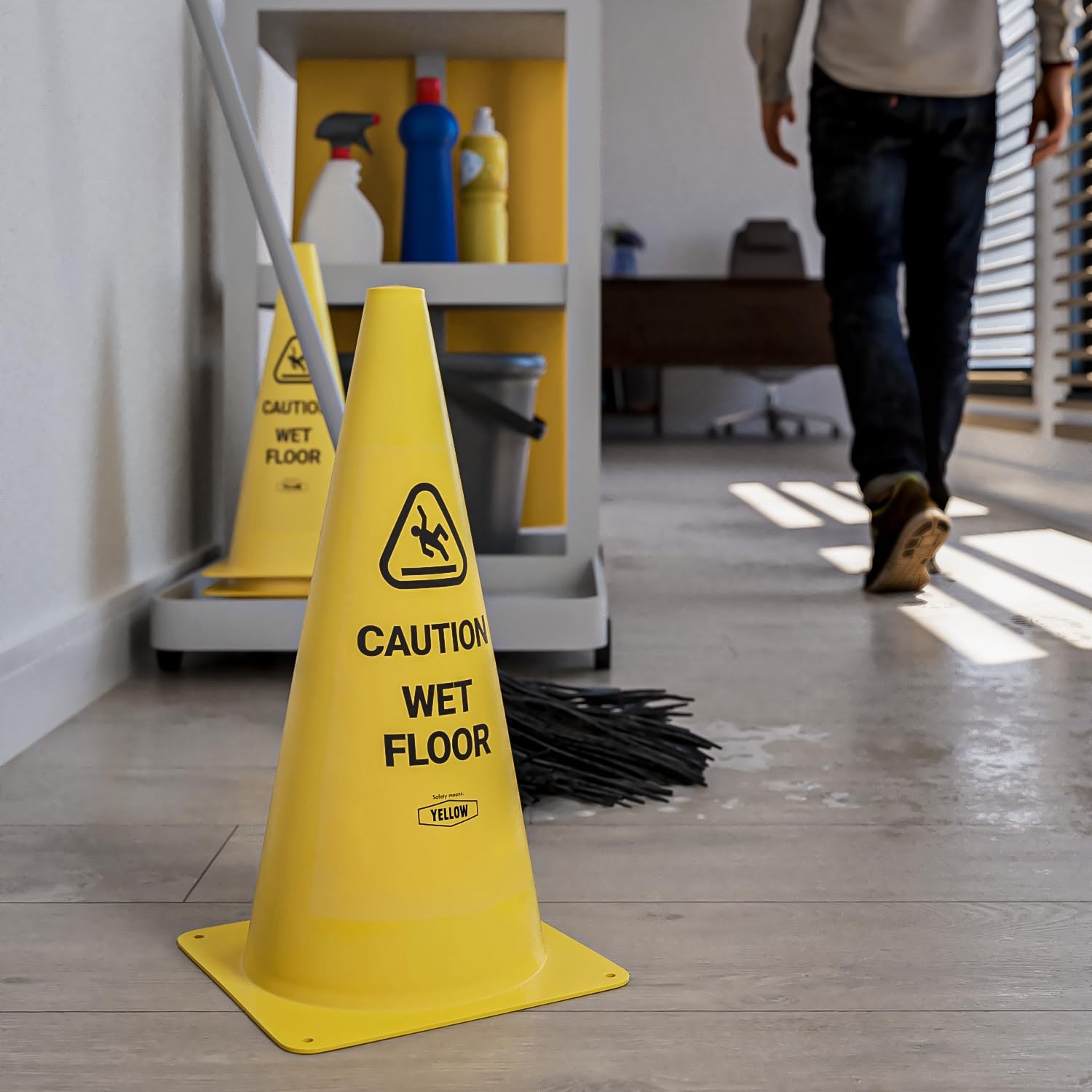 - PREVENTS ACCIDENTS: The Yellow Safety Wet Floor Cones act as a physical barrier, preventing people from inadvertently walking into or near a wet area. By creating a visual and physical obstacle, these cones help redirect foot traffic, keeping individuals away from slippery surfaces and reducing the chances of accidents and injuries.