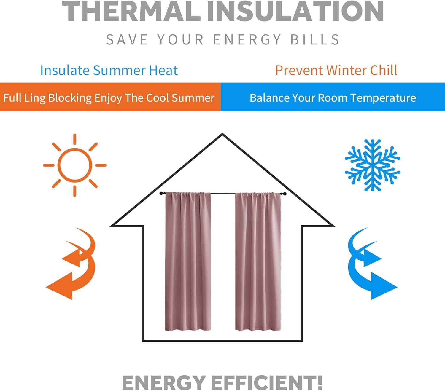 - ENERGY SMART - Curtains are work well on balance the temperature inside and outside by insulating summer heat and winter chill, so that these room darkening curtains can reduce the energy waste and save the daily bill effectively.