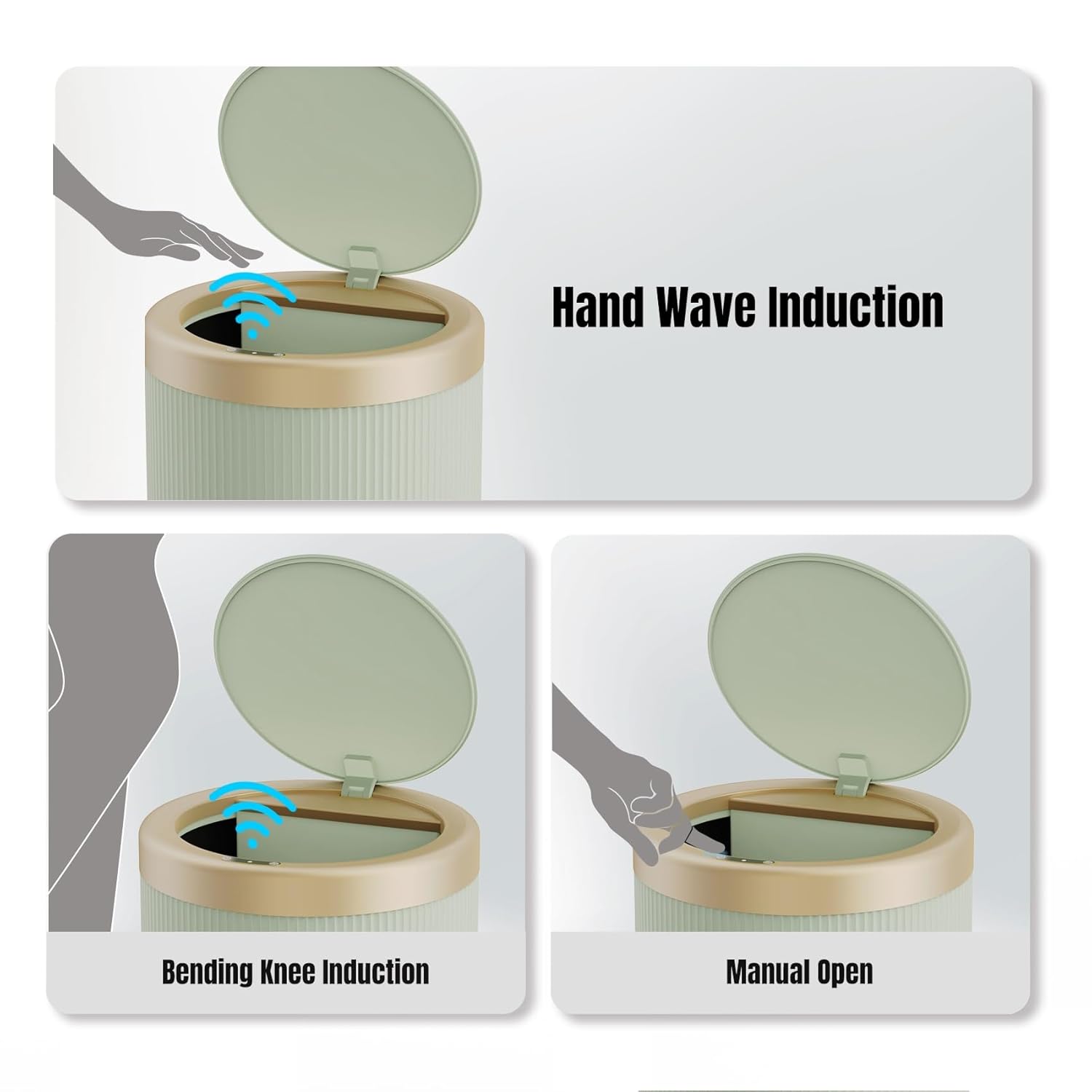 URALFA Automatic Motion Sensor Bathroom Trash Can with Lid, 10.5 Liter / 2.8 Gallon Touchless Trash Bin, Smart Dog Proof Garbage Can, Small Waste Basket for Toilet, Office, Bedroom (Green)