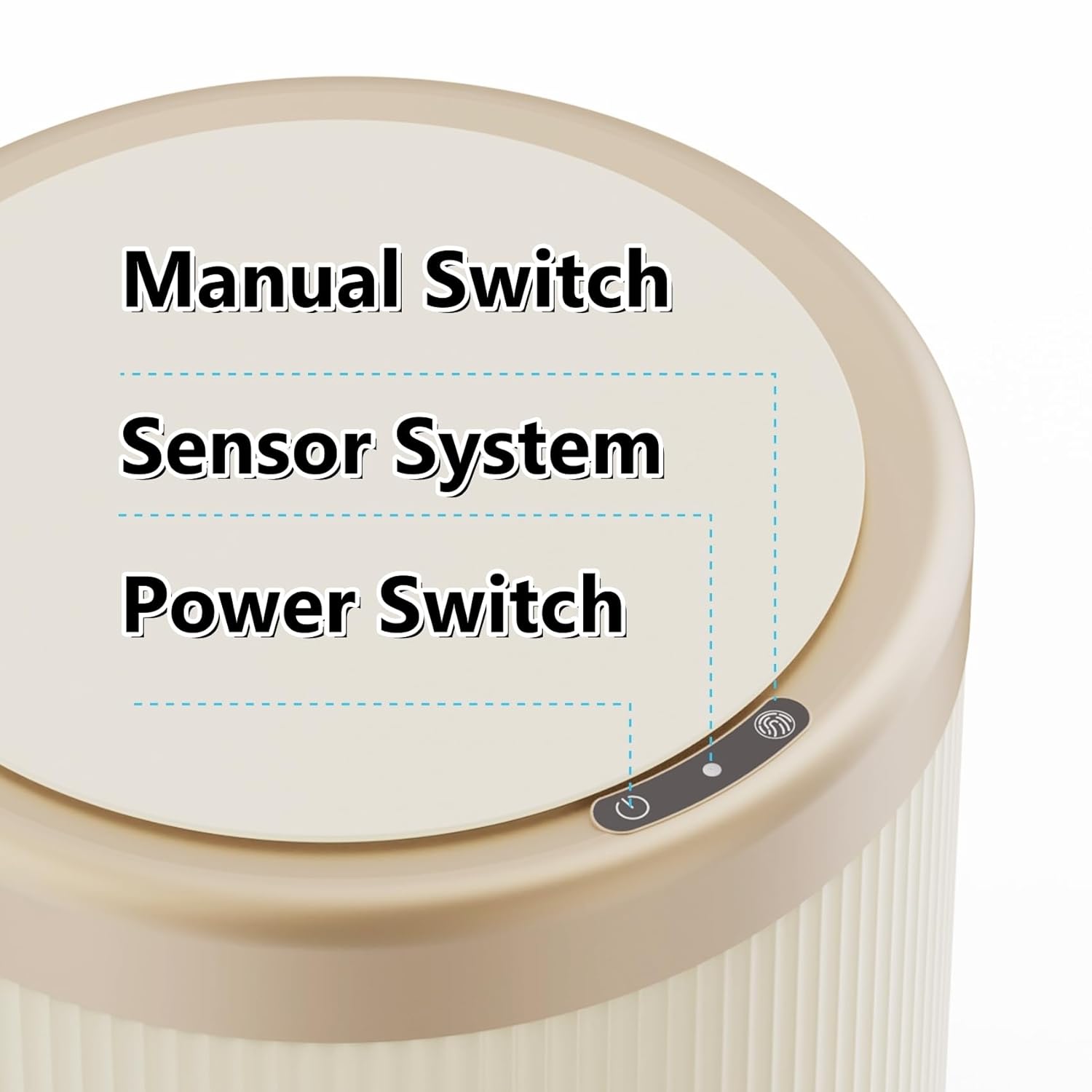 URALFA Automatic Motion Sensor Bathroom Trash Can with Lid, 10.5 Liter / 2.8 Gallon Touchless Trash Bin, Smart Dog Proof Garbage Can, Small Waste Basket for Toilet, Office, Bedroom (Cream White)