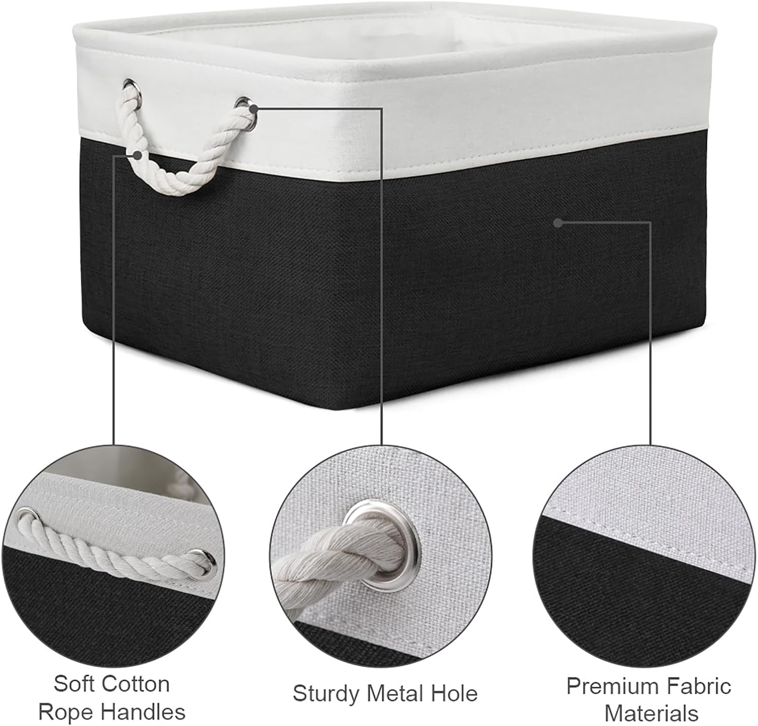 TheWarmHome Storage Bins for Shelves - 1 Pack 15.7x11.8x8.3 inch Canvas Storage Basket for Organizing Cubes Gift Dog Cloth Toy (White & Black)