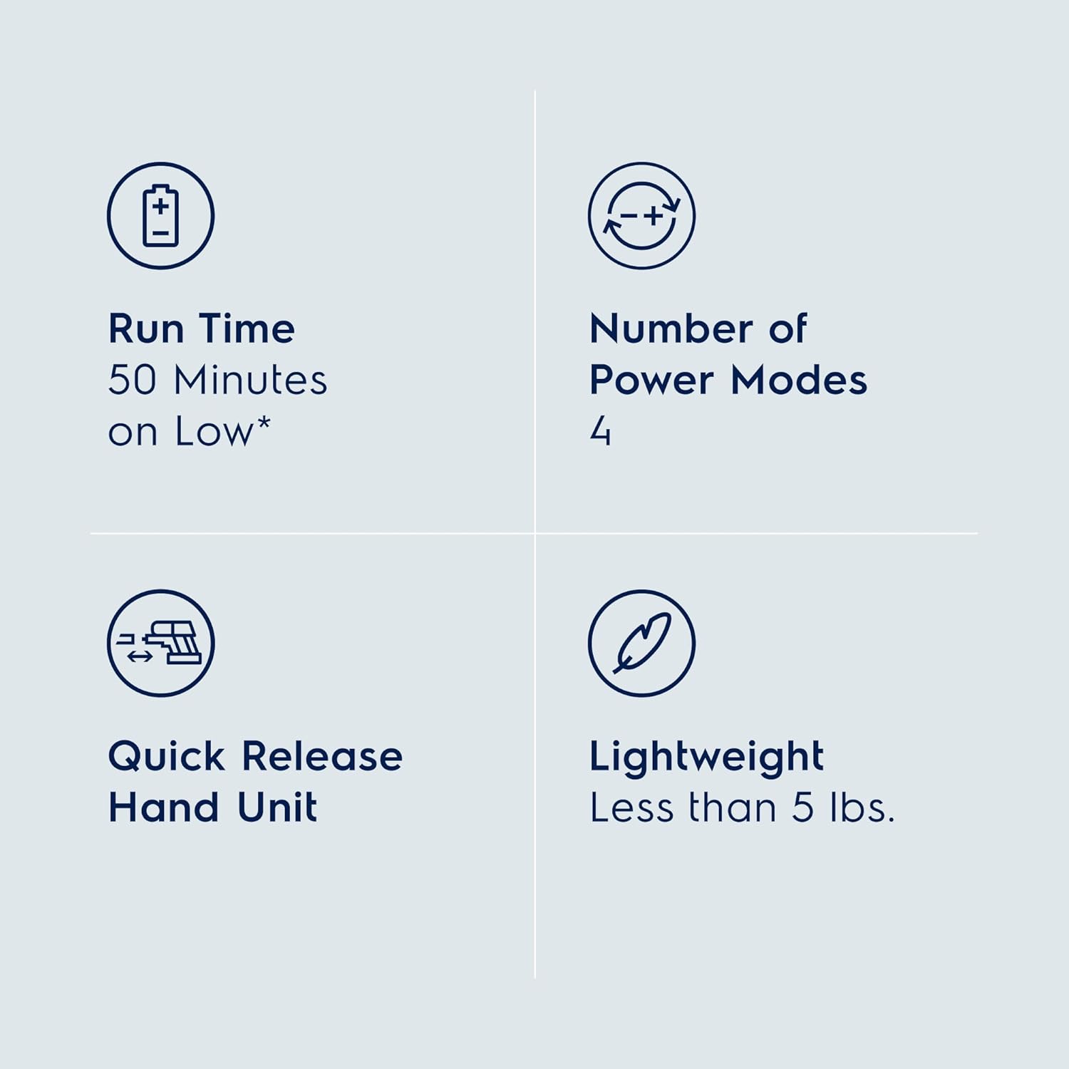 - Versatile Lightweight Design: Weighing less than 5 lbs without accessories, the ergonomic design offers easy maneuverability, with a full tilt feature for cleaning under furniture and a quick-release hand unit for fast clean-ups