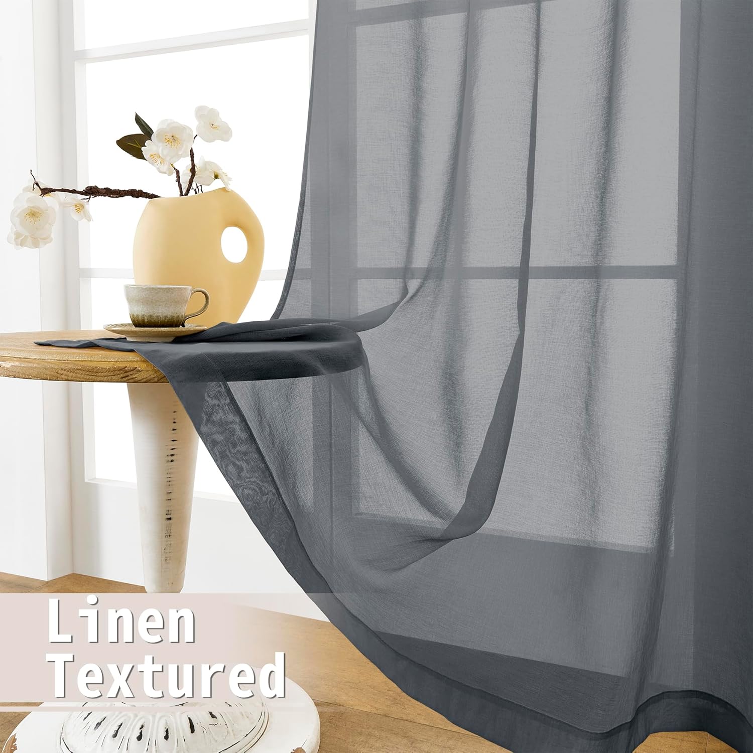 - Light Filtering: The linen look dark grey door sheer curtain can allow the right amount of natural light through to bring your room a hazy and softer vision, keep you away from someone’s glance from outside and provide you some privacy.