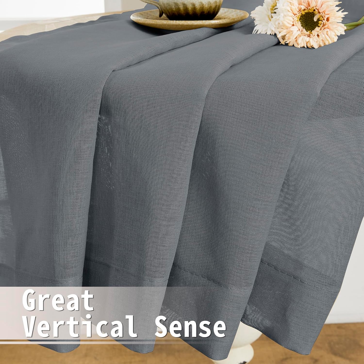 - Light Filtering: The linen look dark grey door sheer curtain can allow the right amount of natural light through to bring your room a hazy and softer vision, keep you away from someone’s glance from outside and provide you some privacy.