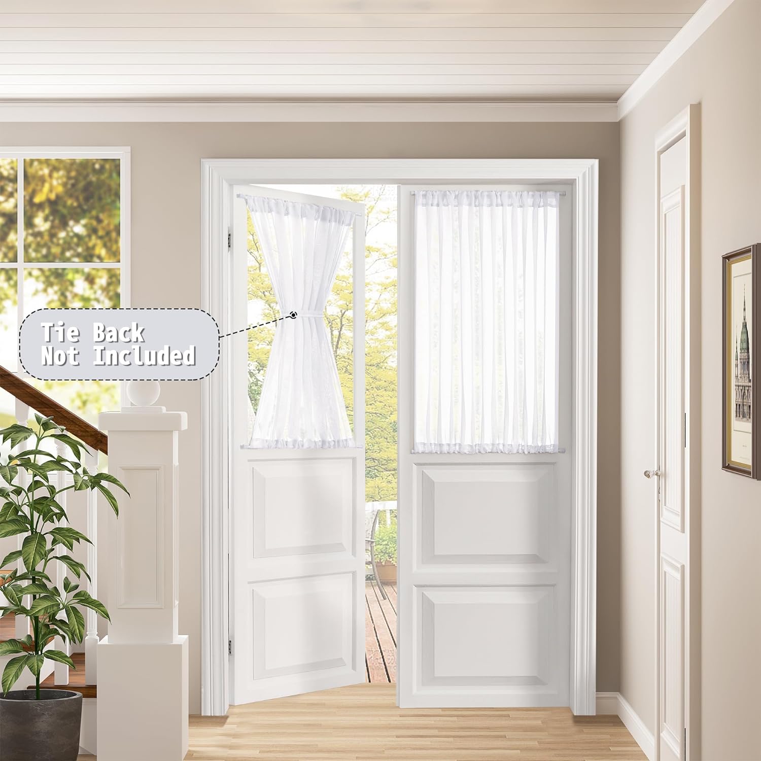 - Light Filtering: The linen look white door sheer curtain can allow the right amount of natural light through to bring your room a hazy and softer vision, keep you away from someone’s glance from outside and provide you some privacy.