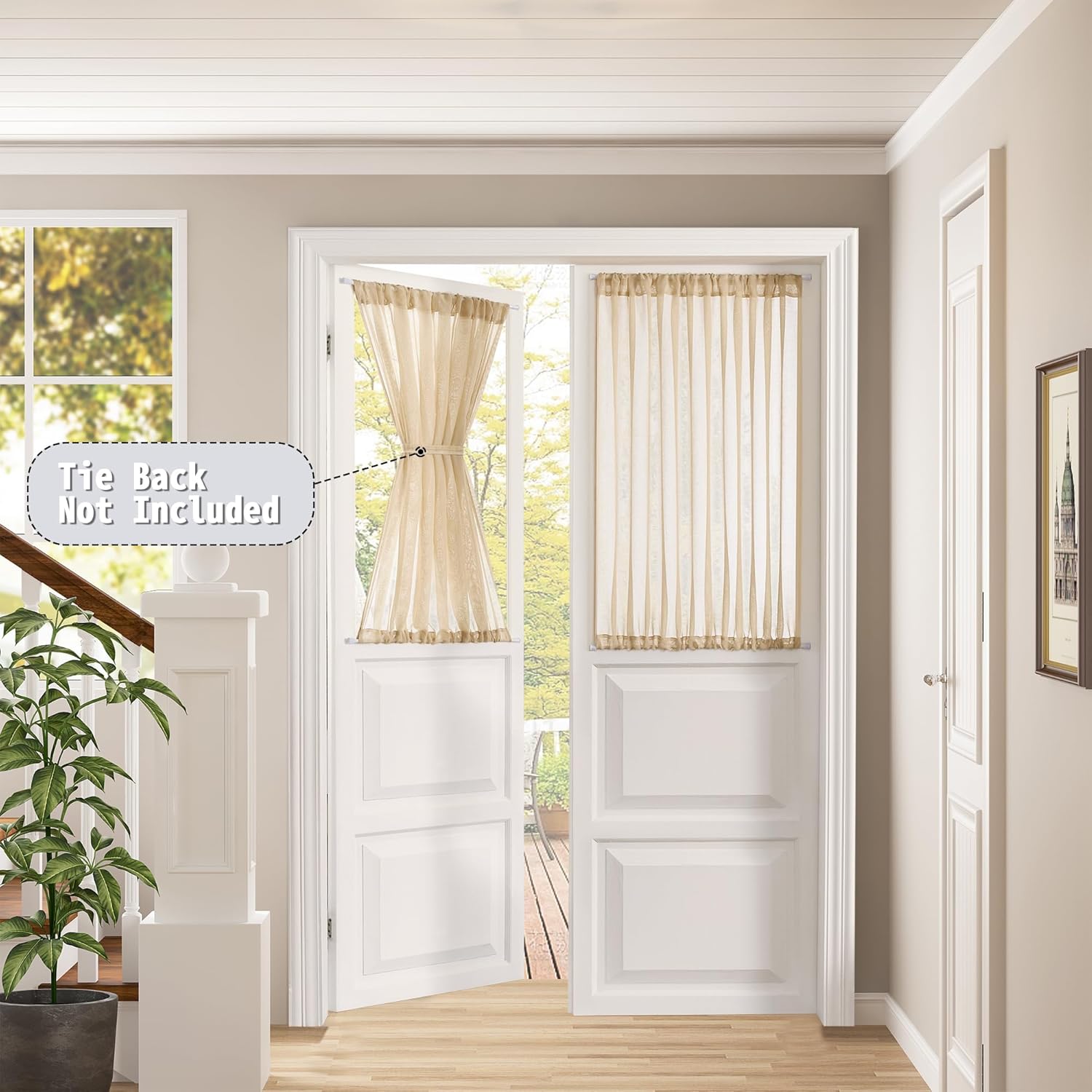 Tollpiz Small Sheer Curtain Linen Textured Curtain Sheers Doorway Light Filtering Voile French Door Rod Pocket Curtains Patio Glass Door, 25 x 40 inches Long, Beige, Set of 1 Panel