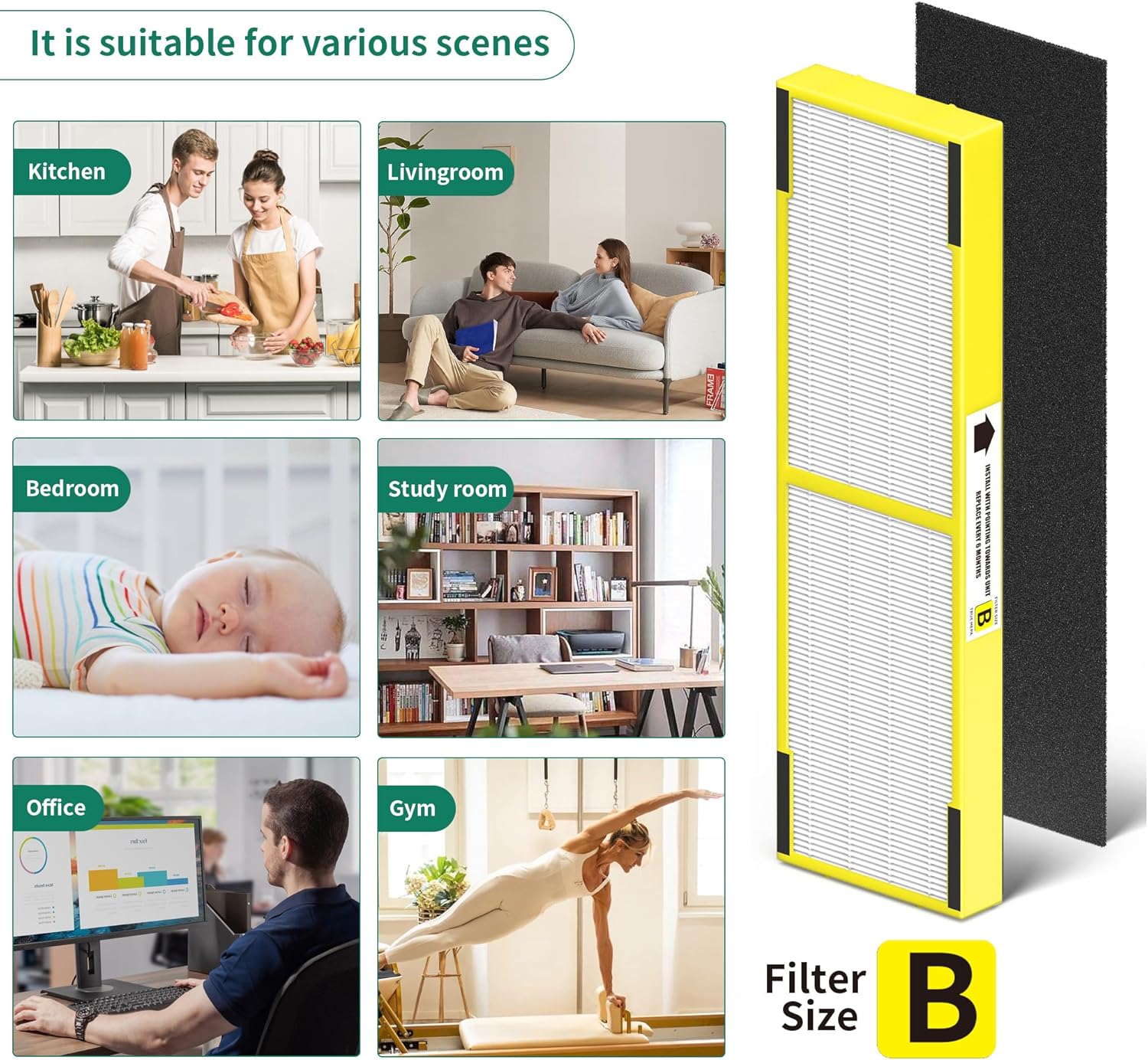 - 【Replacement Tip】The HEPA filter B can be replaced 6-12 months and the activated carbon pre-filter can be replace 3-6 months depending on using frequency