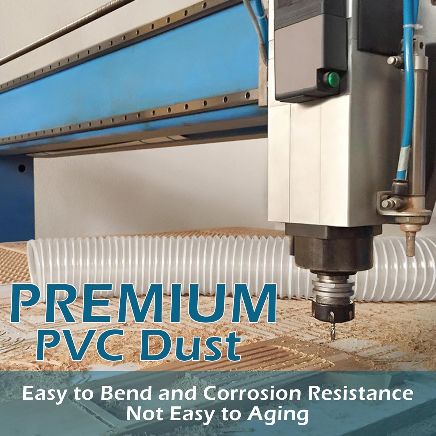 - CLEAR PVC DUST COLLECTION HOSE; The clear PVC material allows you to see not only dust and debris, but also if any buildup or clogging has occurred, dealing with unexpected situations in a timely manner.