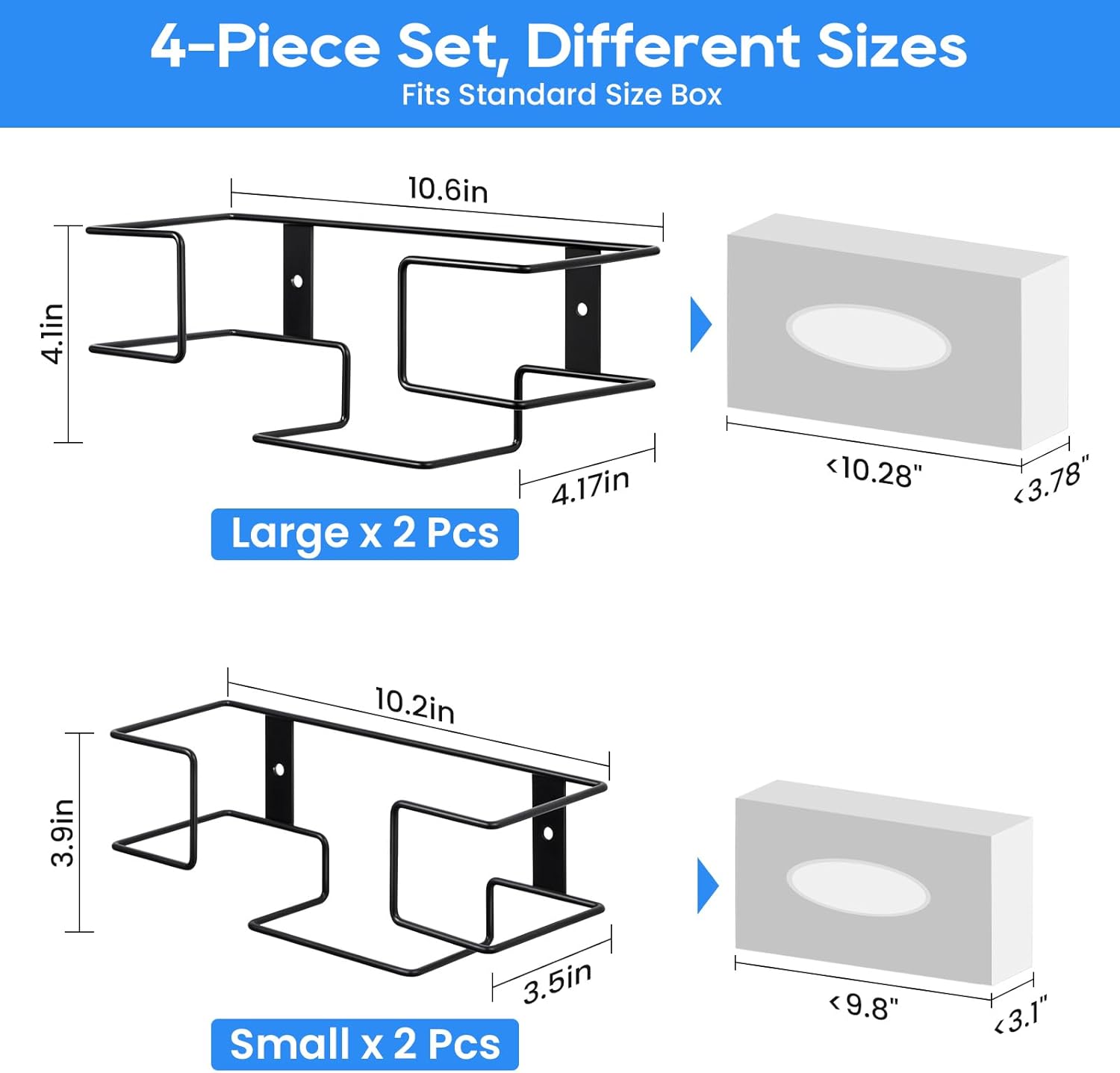 THYGIFTREE Glove Box Holder Wall Mount Dispenser, 4 Pack Metal Rack for Rubber Latex Disposable Gloves Facial Tissue, Black