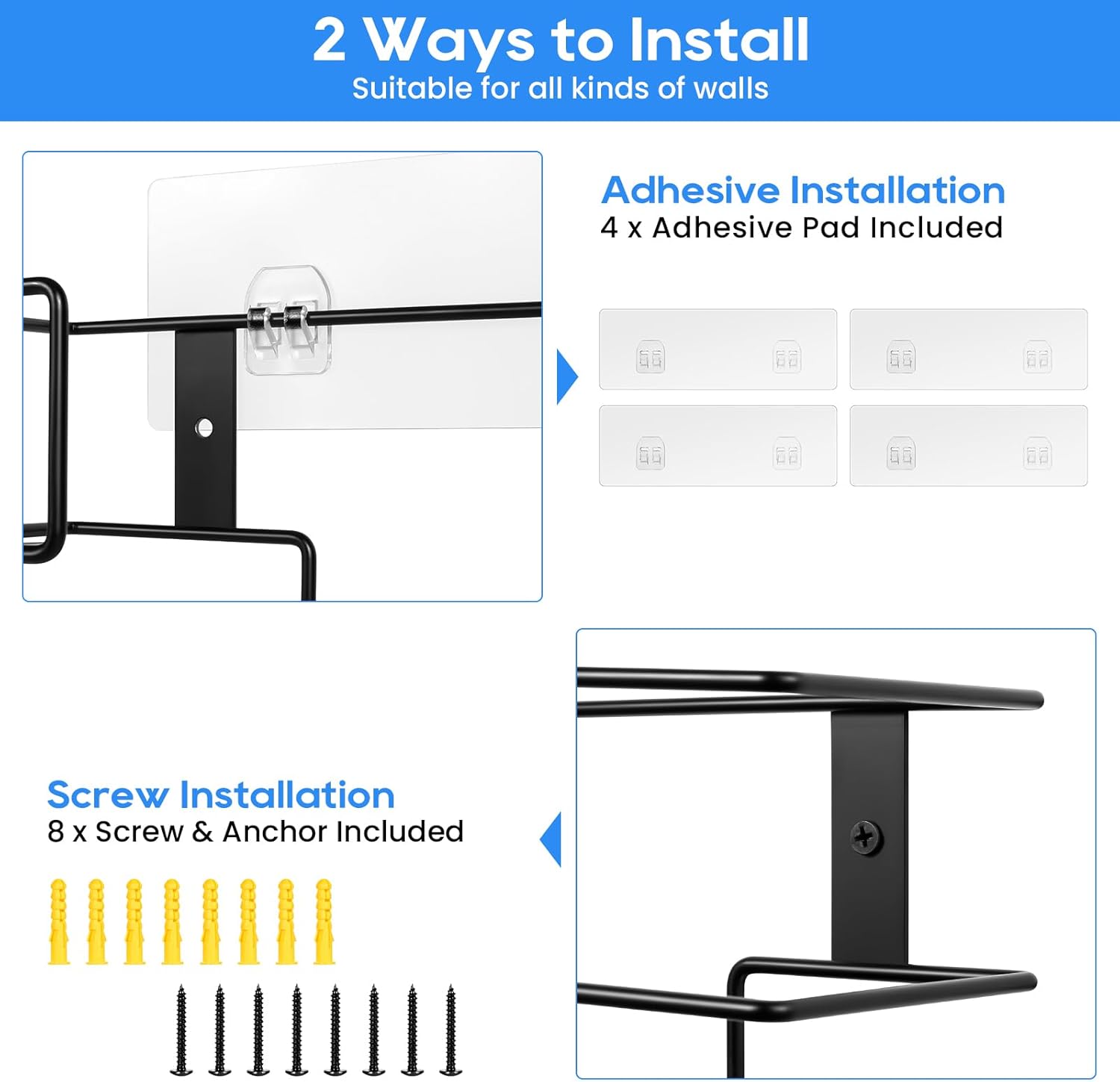 - ăTwo Installation MethodsăComes with all mounting hardware, the glove rack can be mounted on the wall or cabinet door by adhesive hooks or screws, allowing you to choose the installation method according to the wall.