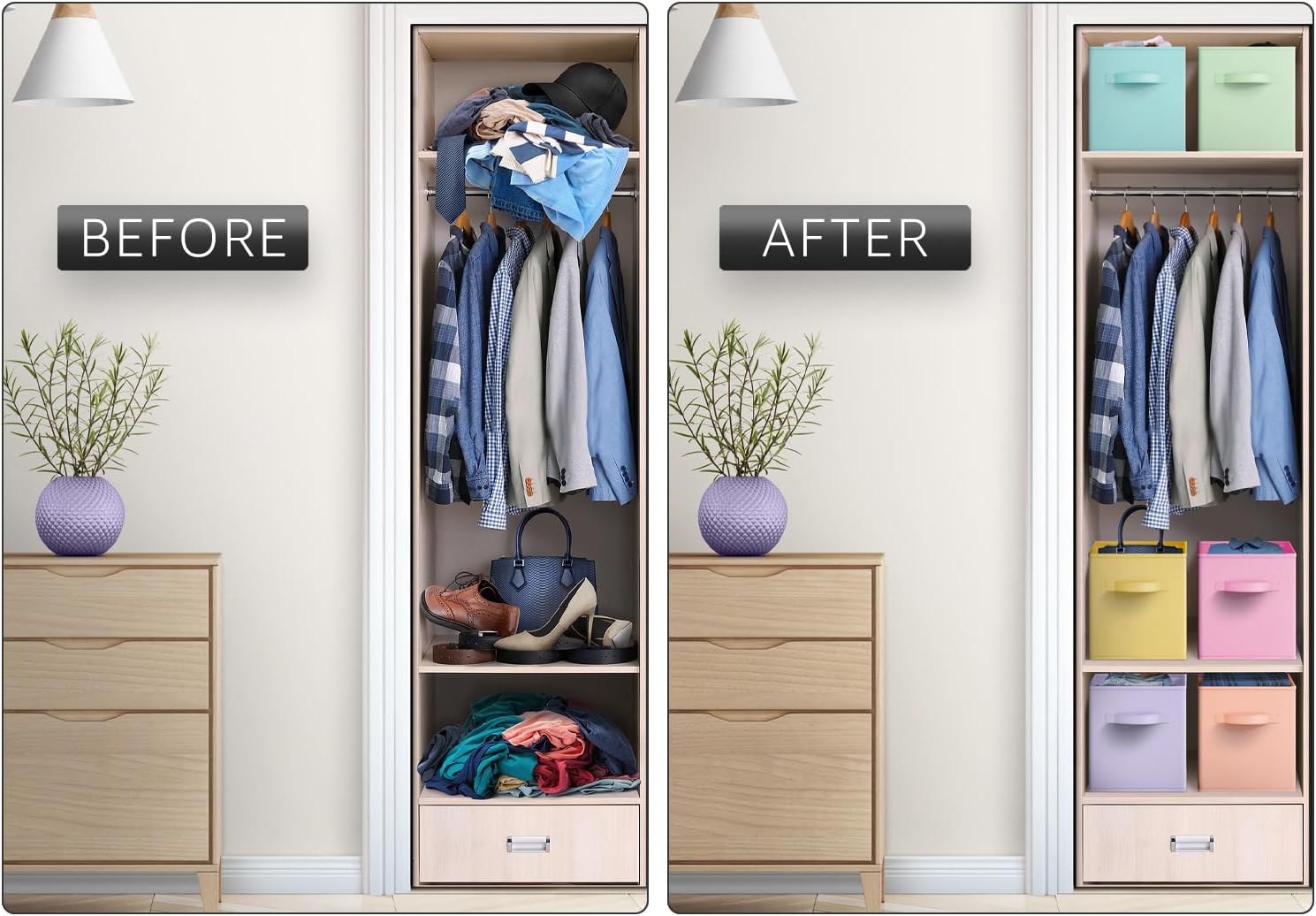 - Collapsible Storage Cubes: Save space when not in use by folding storage cube bins flat for easy organization and storage - Assemble Sorbus Storage Bins in seconds, simply pop cardboard floor into place - Features 2 sturdy handles for easy transport - Lightweight and durable