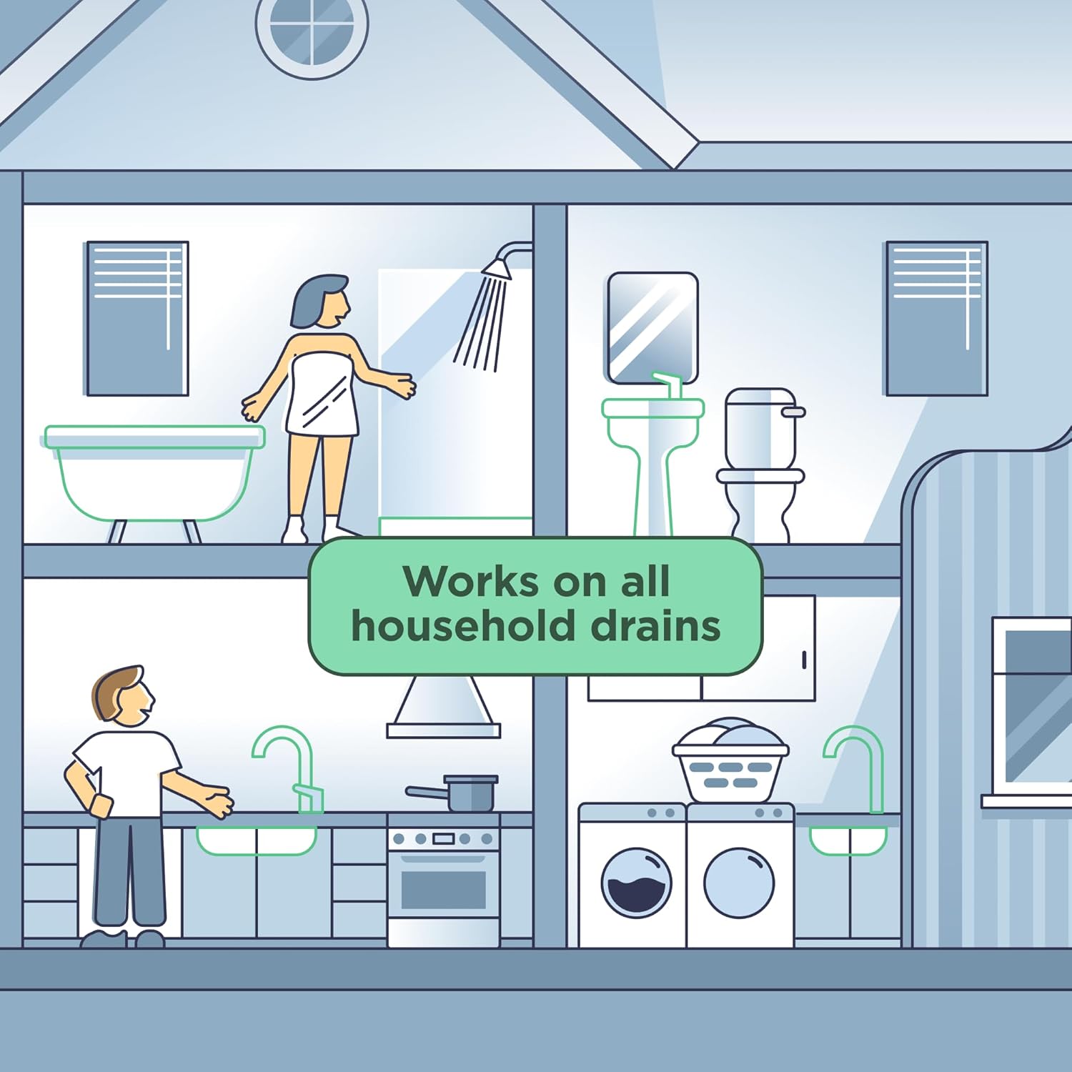 - HOW IT WORKS - All natural enzymes gently breakdown all the gunk that builds up in drains & pipes, forming a protective layer that keeps working to prevent clogs, even after you are done