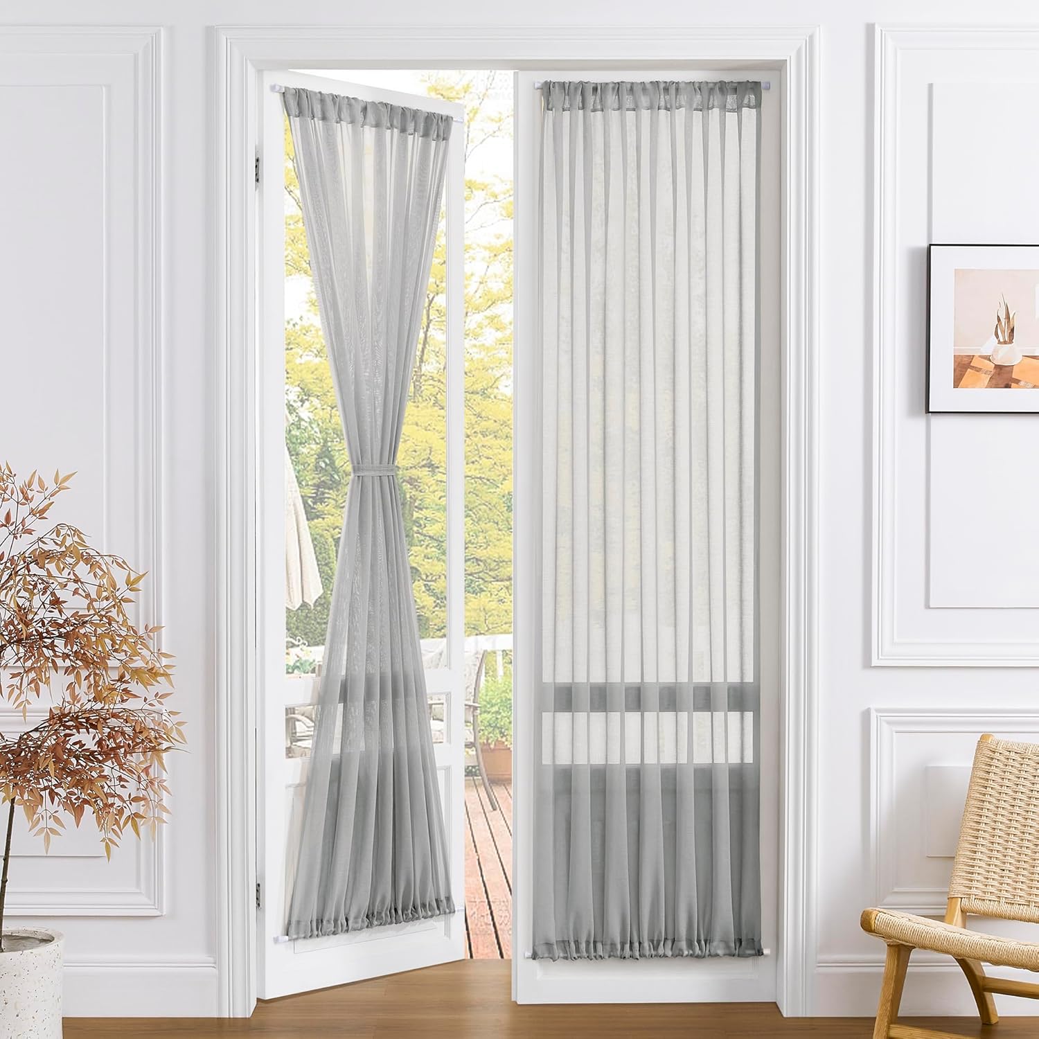 Tollpiz Sheer Curtain Closet Linen Textured Curtain Sheers Doorway Light Filtering Voile French Door Rod Pocket Curtains Patio Glass Door, 25 x 80 inches Long, Silver Grey, Set of 1 Panel