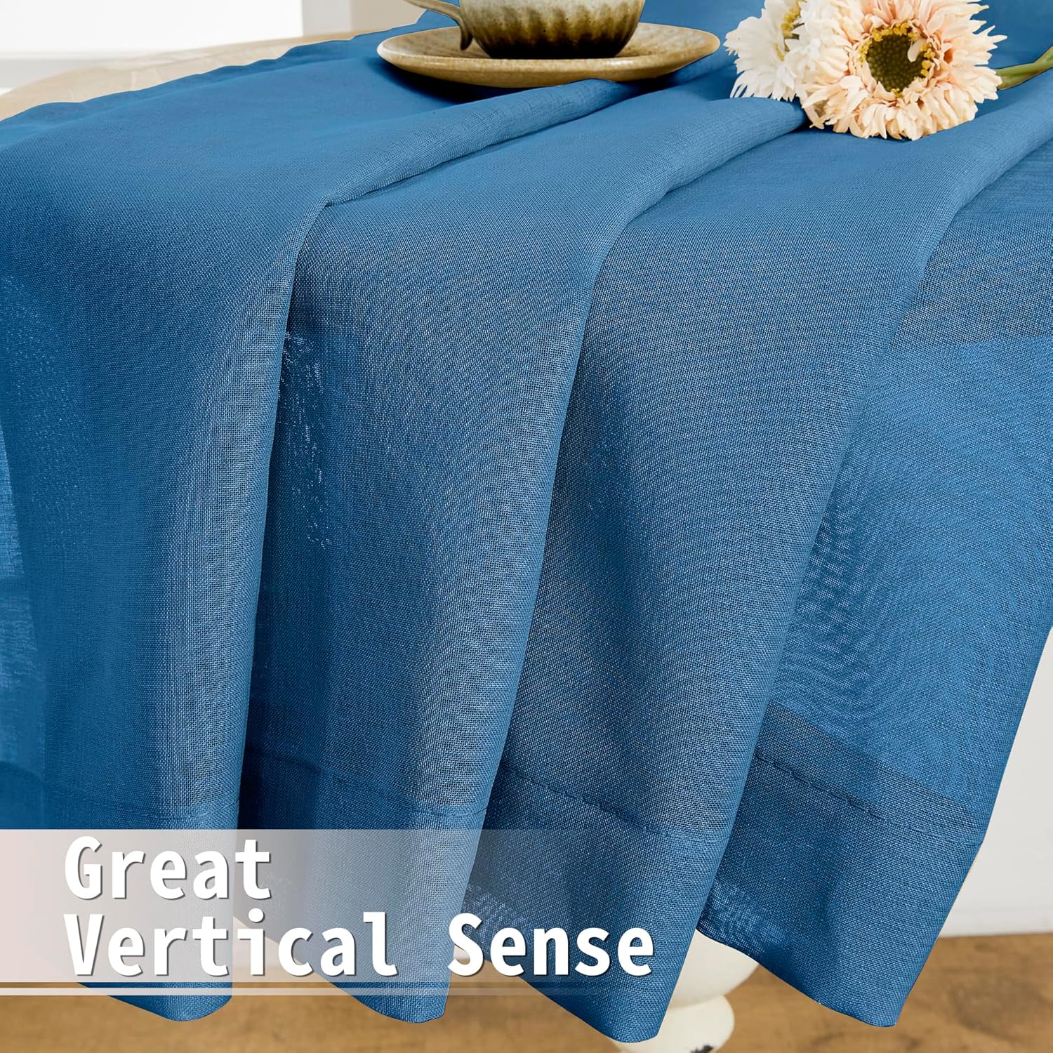 Tollpiz Sheer Curtains Closet Linen Textured Curtain Sheers Doorway Light Filtering Voile Patio Glass Door Rod Pocket Curtains French Door, 54 x 80 inches Long, Classic Blue, Set of 1 Panel
