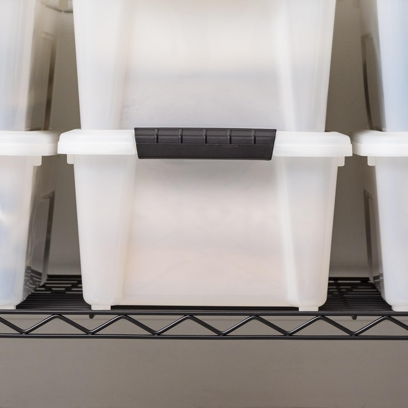 IRIS USA 13.5 Qt Stackable Plastic Storage Bins with Lids, 8 Pack - BPA-Free, Made in USA - Discreet Organizing Solution, Latches, Durable Nestable Containers, Secure Pull Handle - Pearl