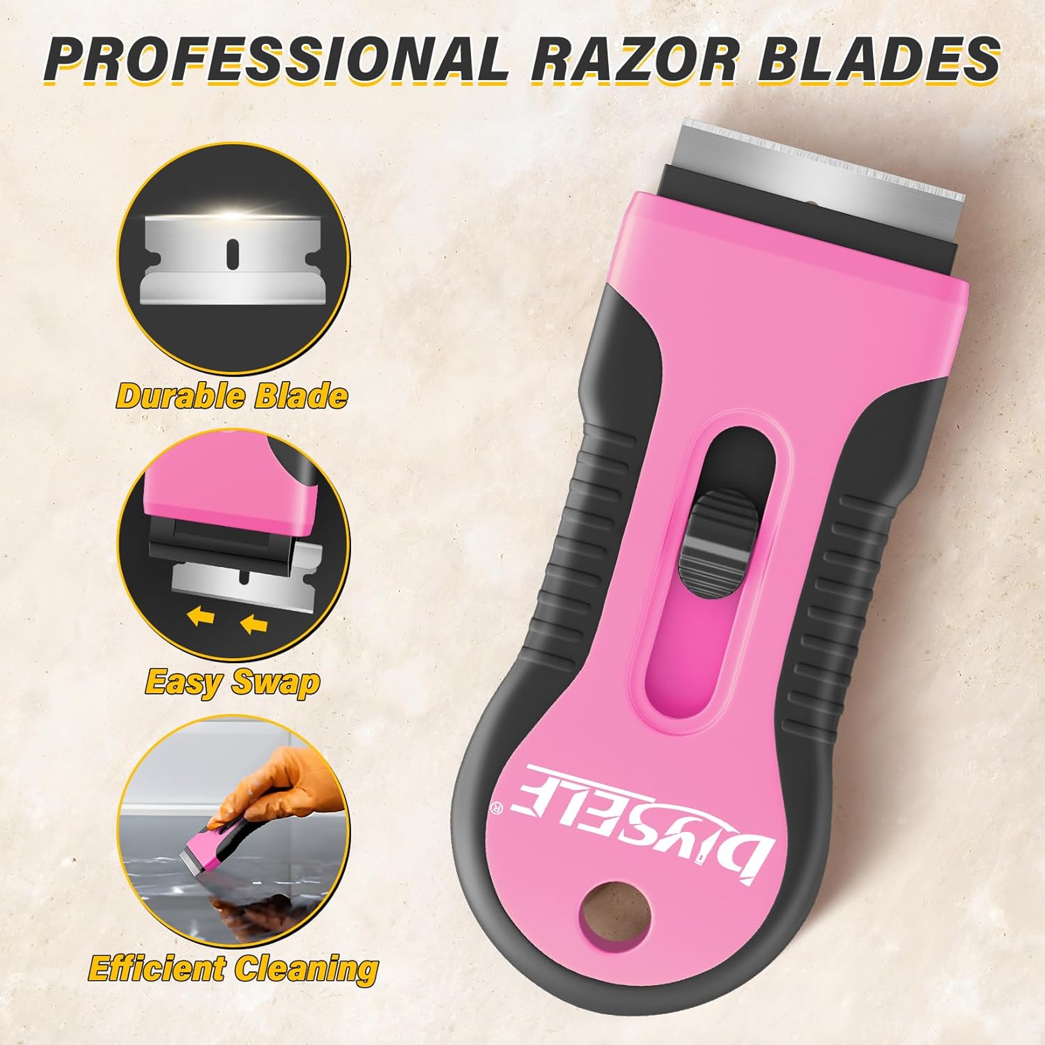 DIYSELF 2 Pack Razor Blade Scraper, 10 PCS Spare Razor Blades, Enhanced Razor Scraper, Razor Blade Scraper Tool for Glass Top Stove, Multipurpose Glass Scraper, Razor Scraper Tool for Paint, Sticker
