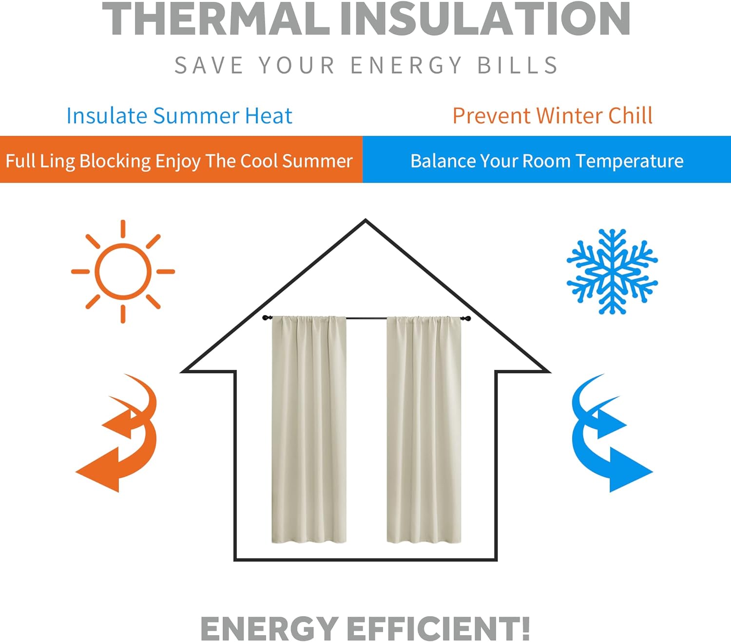 - ENERGY SMART - Curtains are work well on balance the temperature inside and outside by insulating summer heat and winter chill, so that these room darkening curtains can reduce the energy waste and save the daily bill effectively.