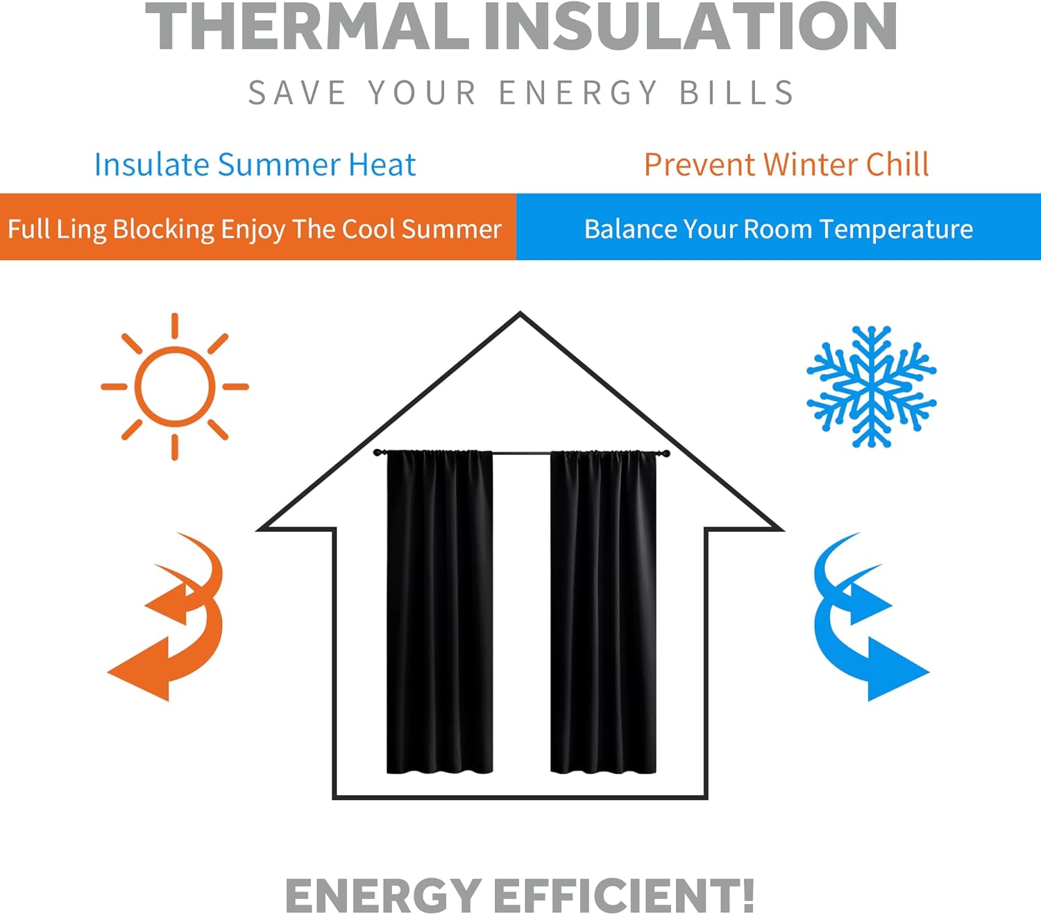 - ENERGY SMART - Curtains are work well on balance the temperature inside and outside by insulating summer heat and winter chill, so that these room darkening curtains can reduce the energy waste and save the daily bill effectively.