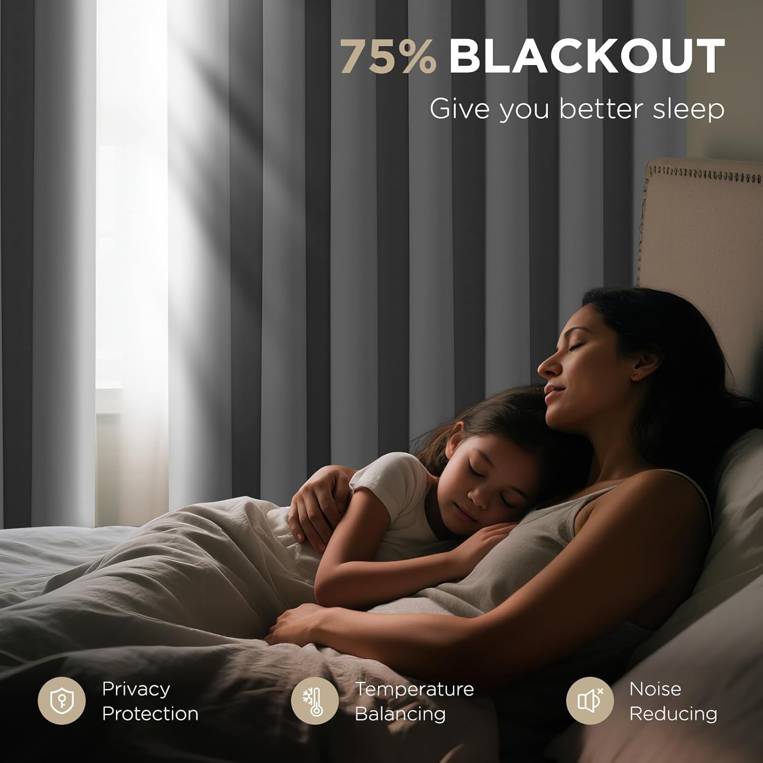 - 【Blackout Performance】Your go-to choice for adjusting indoor light! These curtains block over 75% of sunlight and outdoor glare, creating a cozier atmosphere in bedrooms, living rooms, and more. They also provide excellent privacy protection for your home. Pro Tip: Darker-colored curtains offer even better blackout effects.