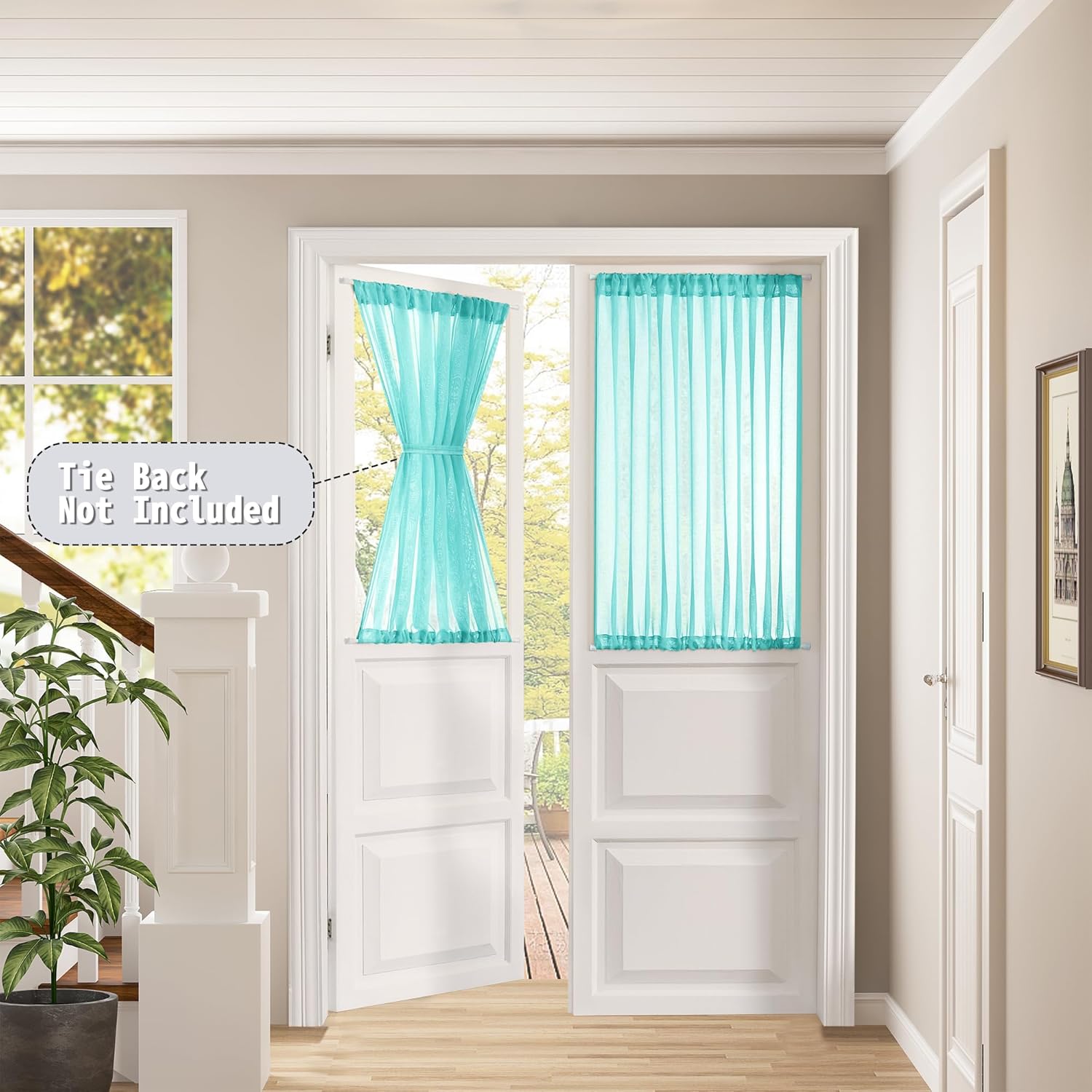 Tollpiz Sheer Door Curtains Closet Linen Textured Curtain Sheers Doorway Light Filtering Voile French Door Rod Pocket Curtains Patio Door, 54 x 63 inches Long, Aqua Blue, Set of 1 Panel