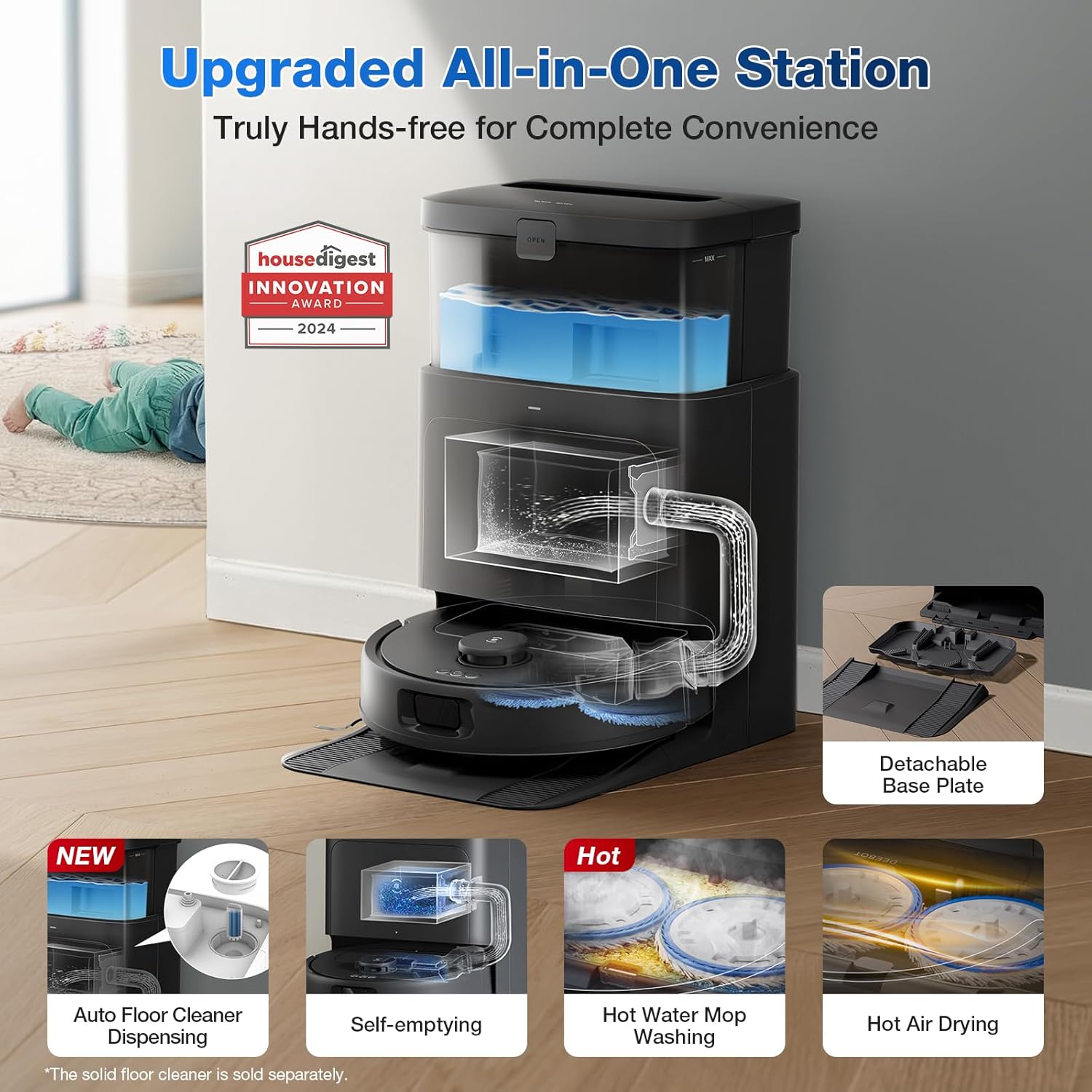 • All-in-One OMNI Station - The DEEBOT N30 PRO OMNI Station supports automatic 140℉ hot water mop washing and self-emptying, designed to liberate your hands. A post-cleaning 104℉ hot air drying function prevents odors, ensuring your home always smells fresh.The 2.6L dust bag can hold up to 75 days' worth of dust, eliminating the need for frequent emptying.