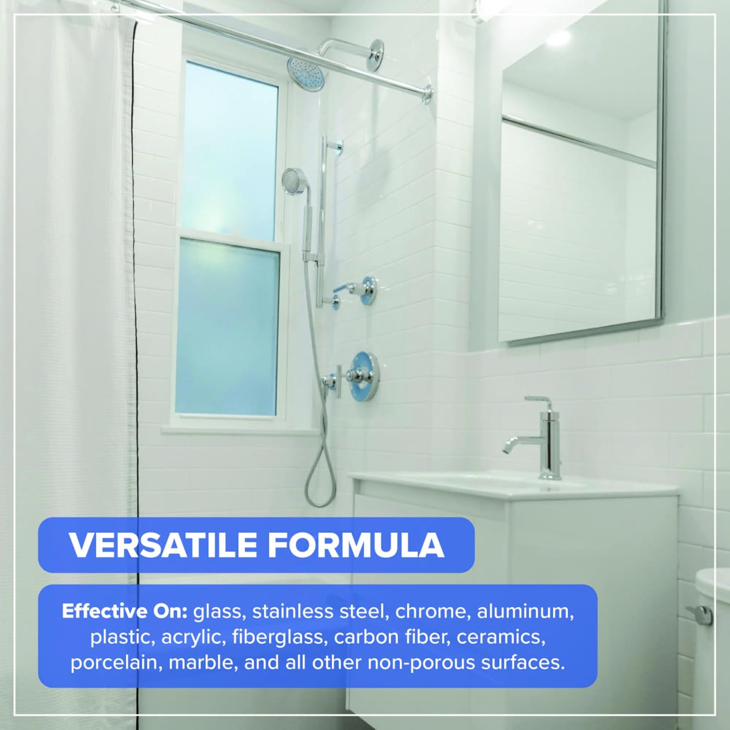 - STUNNING RESULTS: Let our proprietary formula do the hard work. Enjoy a brilliant, streak-free finish with minimal effort. Easily tackle hard water stains, soap scum, rust, limescale, calcium, and everyday grime.
