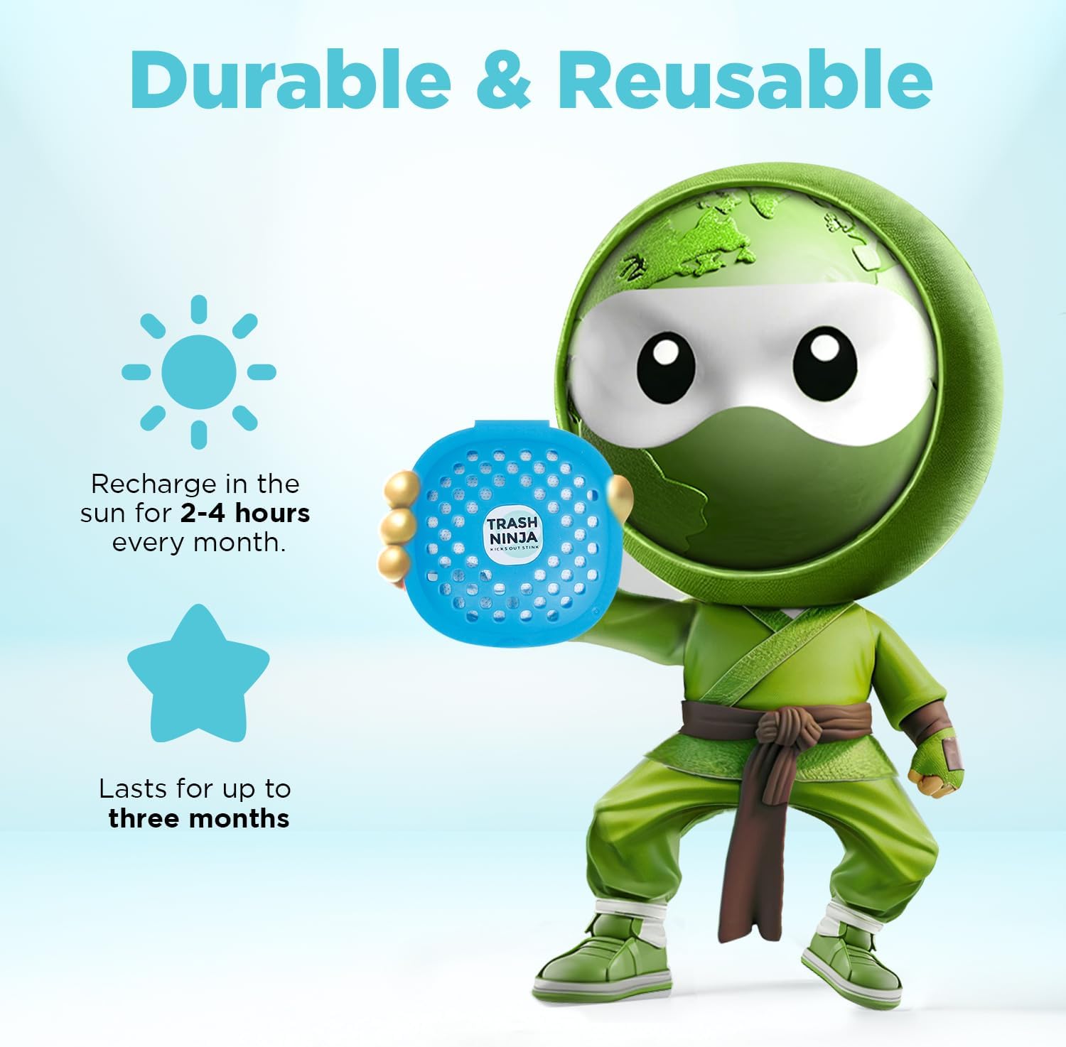 Trash Ninja Trash Can Deodorizer – Stick-On Air Freshener with Activated Charcoal and Fresh Ocean Scent for Kitchen, Bathroom, Fridge, Dumpster, and Trash Compactor Smell Removal