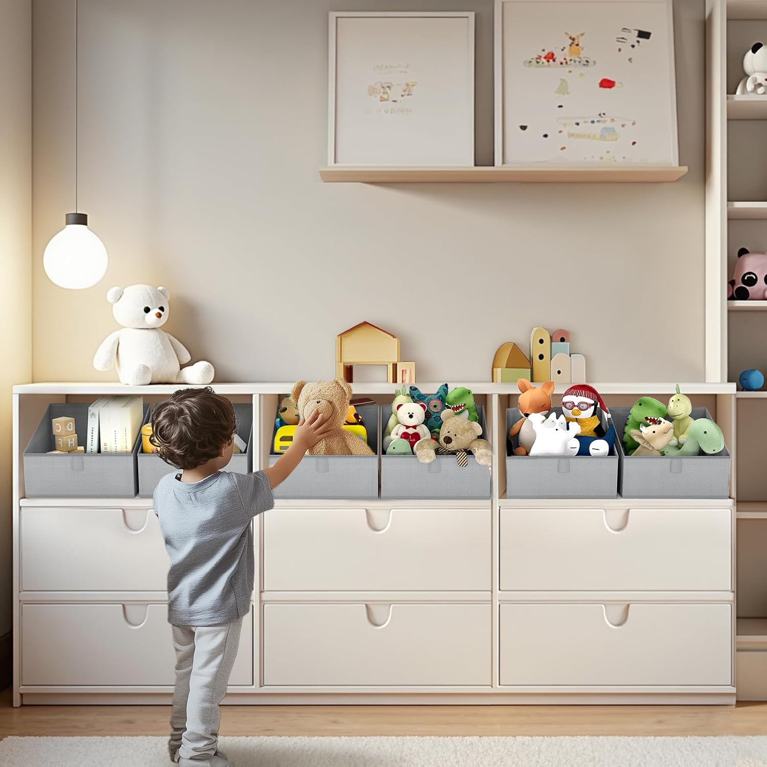 - 【Trapezoidal Design】These storage cubes are Trapezoid design that makes finding things convenient, also allows easy access when putting on the highest shelf. These are ideal closet bins for clothes, bags, shoes, towels, blankets, toys, dolls, and more