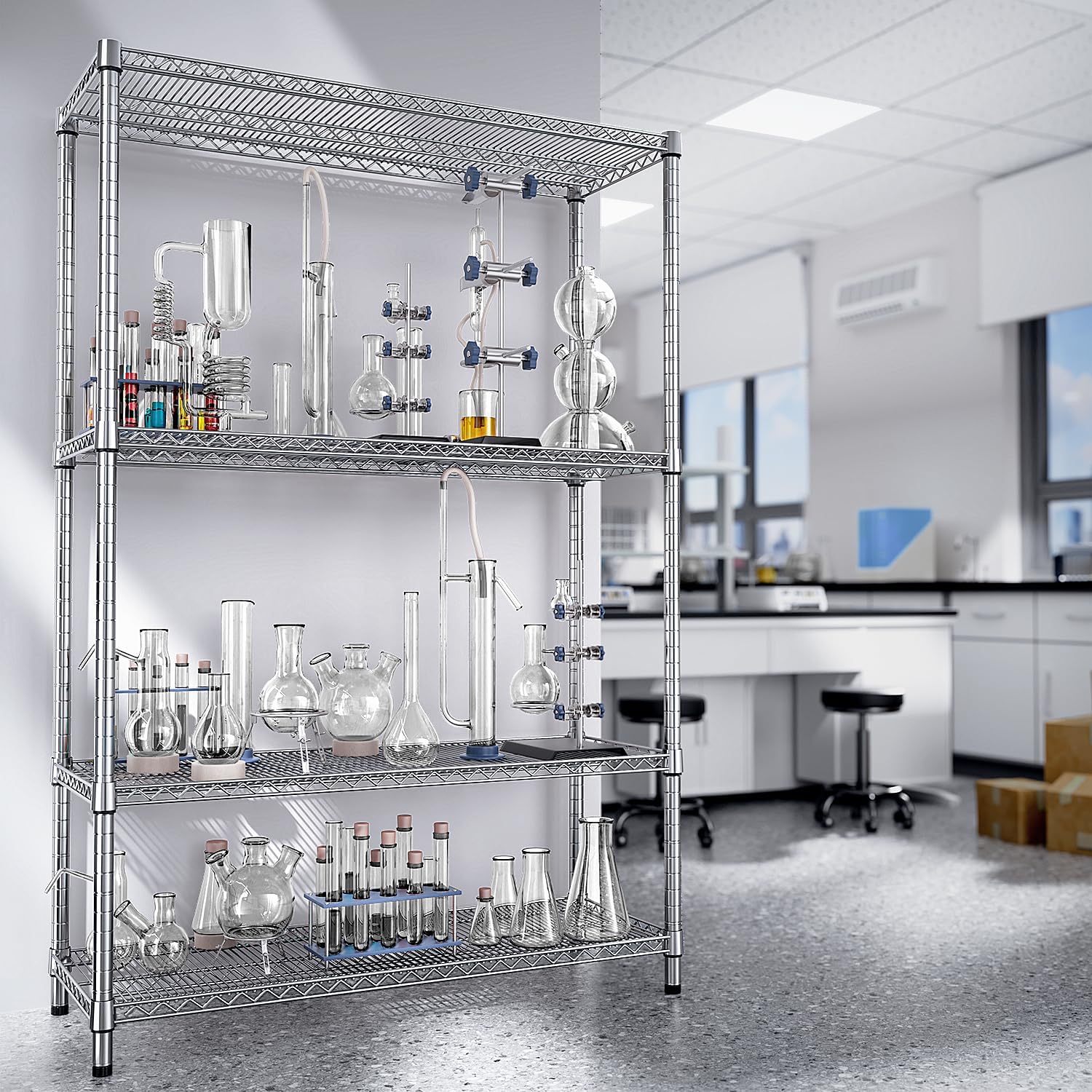 IZEUK 3400 LBS Garage Shelving Wide Storage Shelves 4 Tier Metal Shelves Heavy Duty Adjustable Utility Shelf Rack Chrome 17.7" D x 59.1" W x 70.4" H