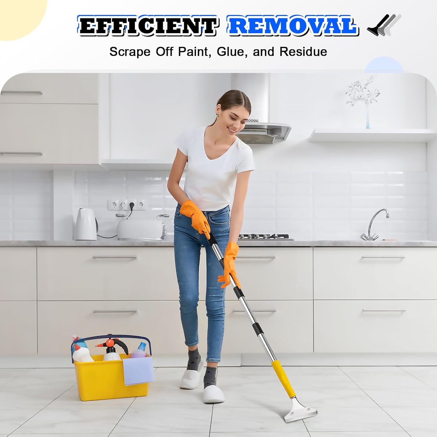DIYSELF Scraper Tool 5.4ft (65in) Adjustable Floor Scraper Long Handle Heavy Duty Paint Scraper 4 Inch Razor Blade Scraper for Windows Glass Cleaning Shower Gum Tile Scraper Ceiling Scraper