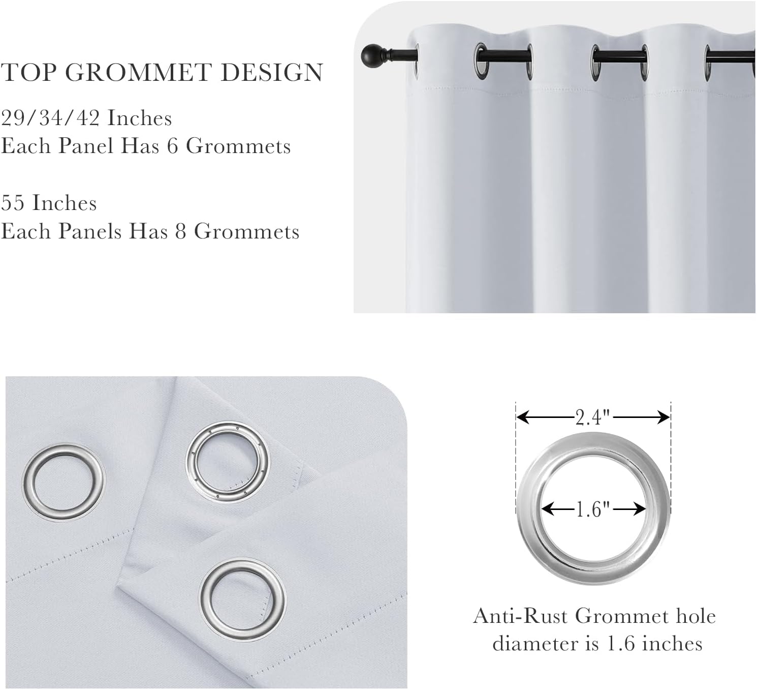 - READY MADE - 2 panels include, each measures W34" x L72", 6 silver grommets(1.6" inner diameter) fit most standard rods. For proper fullness, panels should measure 1.5-2.6 times the width of your window