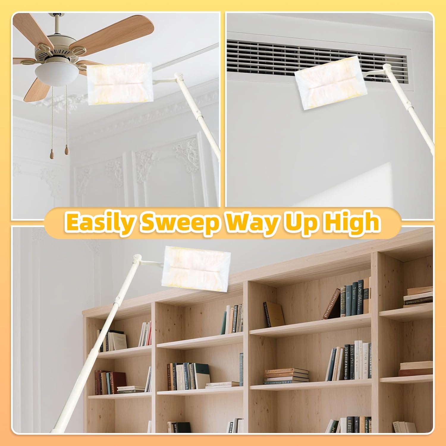 52 Count Disposable Duster Refills for Cleaning, 180° Dusters Refills Compatible with Swiffer Handles (Yellow, 50 Count Dust Removal Brushes + 1 Standard Handle + 1 Extended Handle)