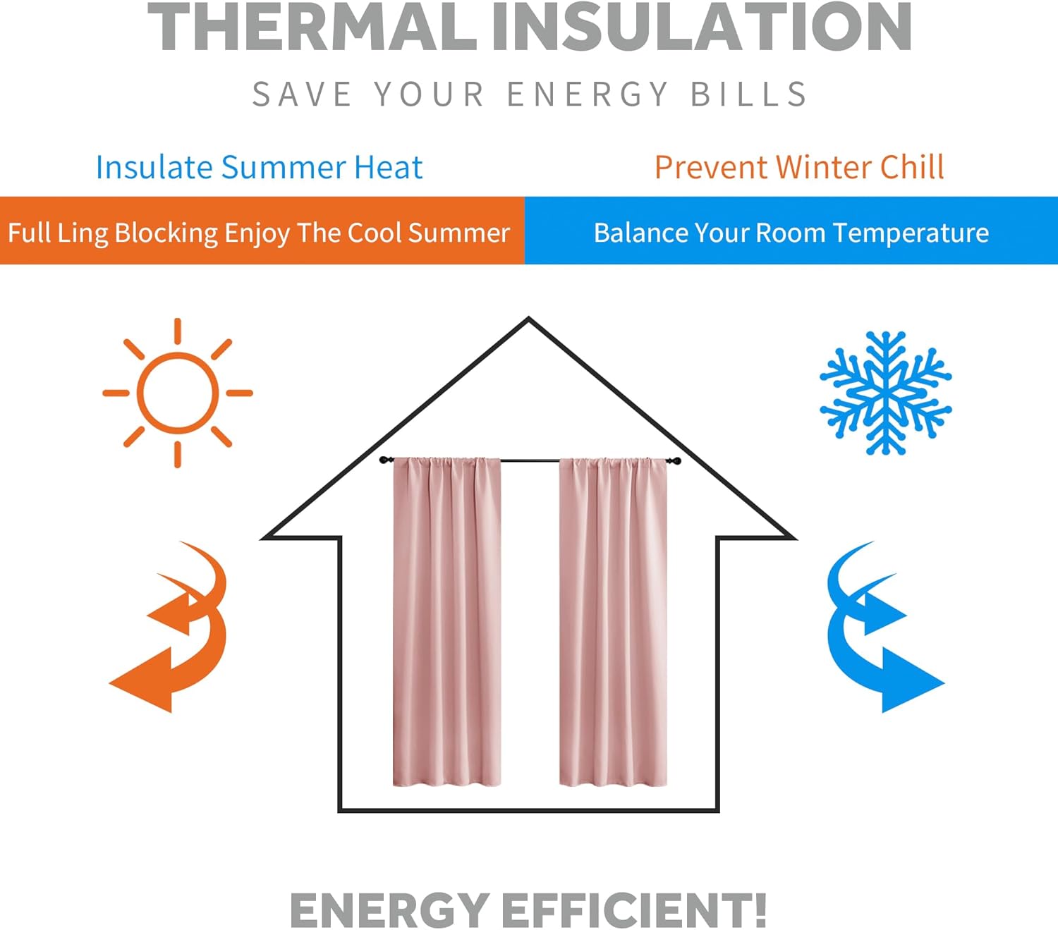 - ENERGY SMART - Curtains are work well on balance the temperature inside and outside by insulating summer heat and winter chill, so that these room darkening curtains can reduce the energy waste and save the daily bill effectively.