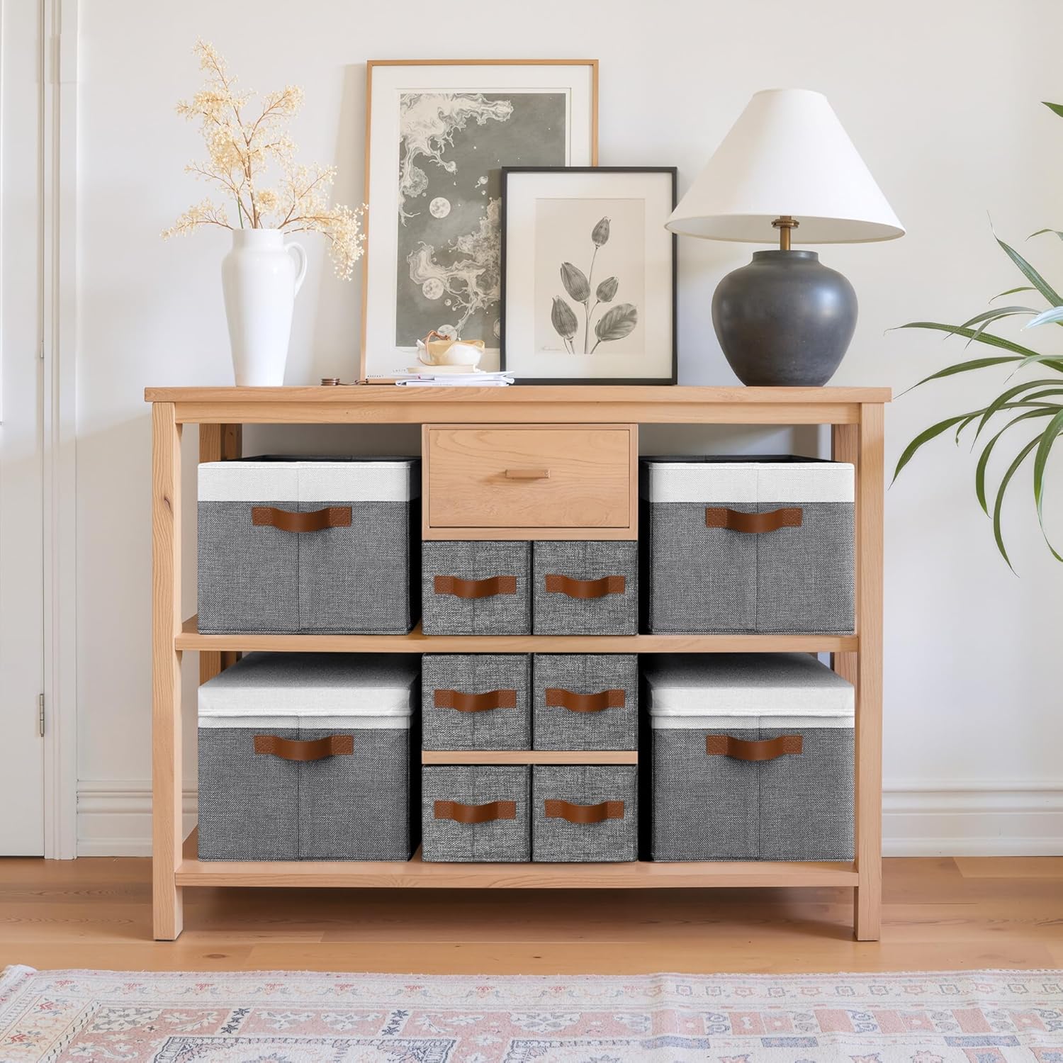 - Easy to Use with PU Handles: Features two PU leather handles that are securely stitched for comfortable grip. Easily pull out or carry the bin from shelves, closets, or tight spaces.