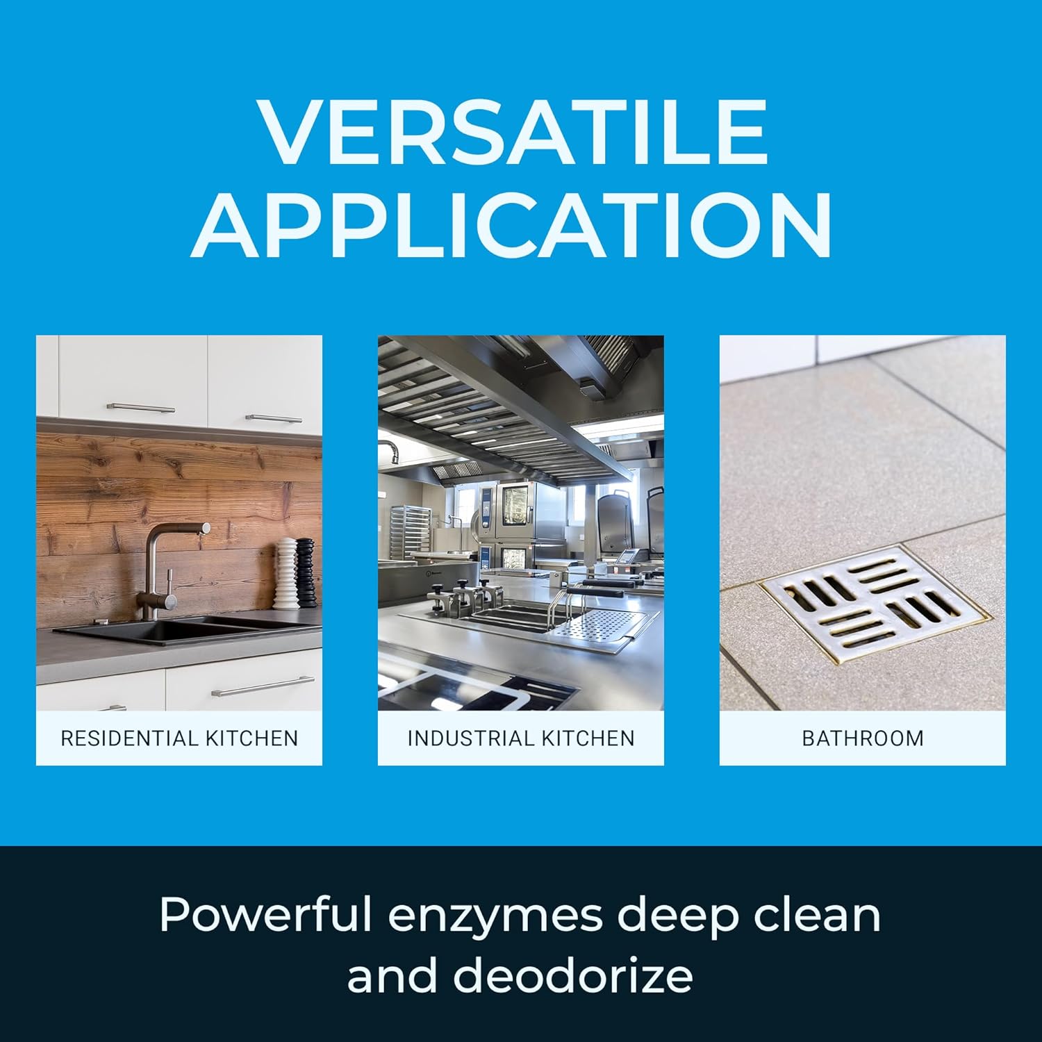 - Versatile Application: Our enzyme-based drain cleaner is ideal for use in restaurants, bars, kitchens, garbage disposals, and anywhere living matter accumulates in drains; Fly-Zyme can be used as a proactive measure or to tackle existing concerns