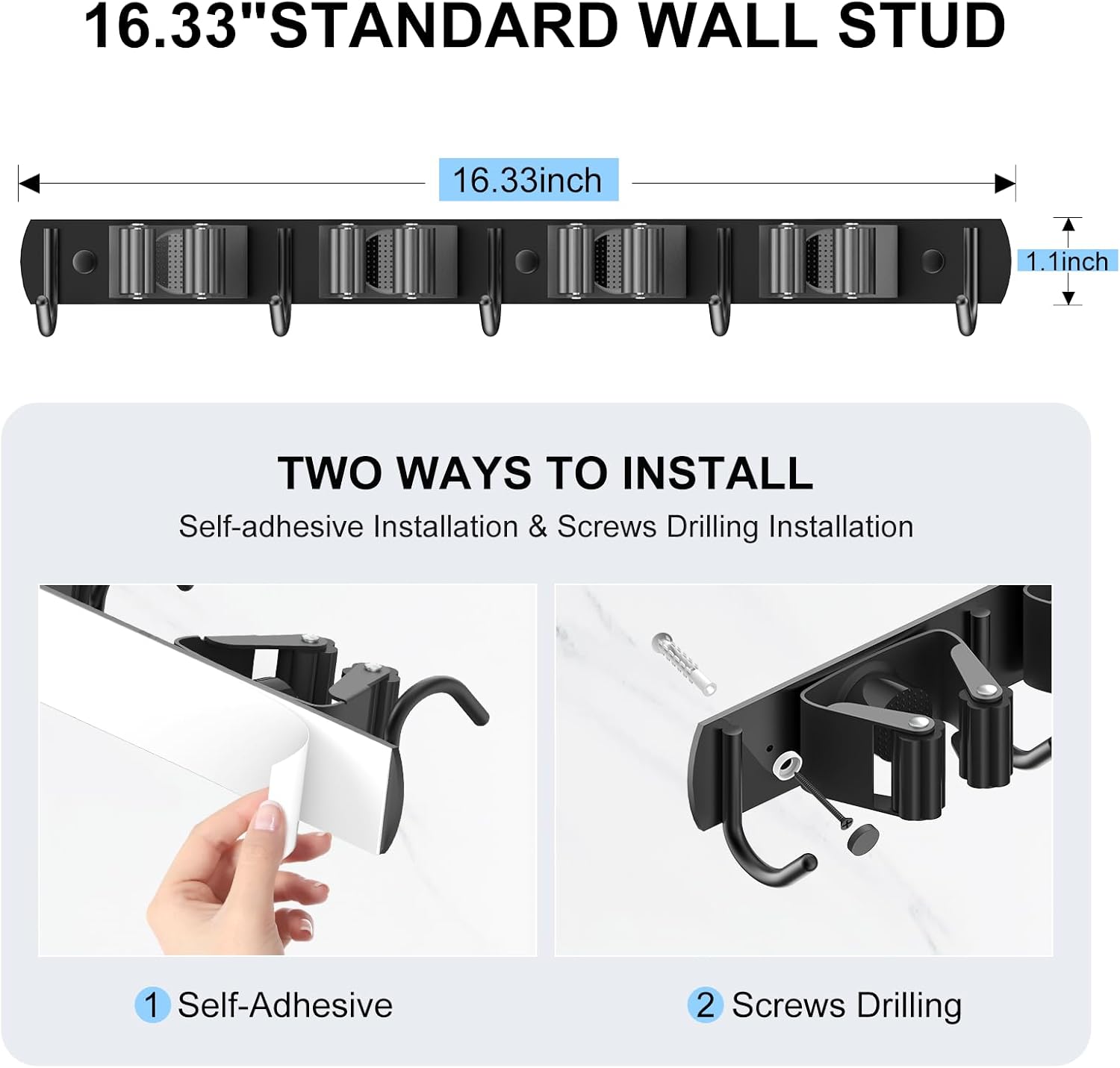 - EASY TO INSTALL & USE: There are two ways to install the broom hanger, designed for different installation surfaces. For smooth surface, you can install the broom holder by self-adhesion, and for rough surfaces, screw drilling wall mounted is more recommended