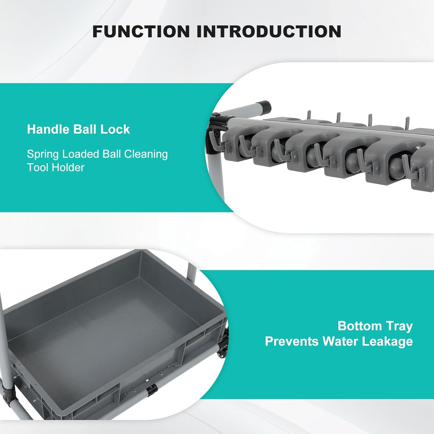 - 【Industrial-Grade Materials】Made from high-quality stainless steel and PP plastic, our cleaning supplies organizer is built to last and is easy to maintain. The sturdy handle with a ball lock ensures secure holding of heavy-duty tools with non-slip grips.
